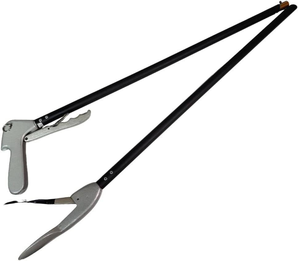 The 60 inch collasible gentle snake tong is a great tool for the snake breeder, keeper, and field herper! Make of aluminum, the tong is easy to handle but very durable. The modern design of the handle make it very comfortable to use and the stainless steel wire allows for smooth operation. The Gentle tong is different from the standard tong with the design of the tong head. The Gentle version has large 2 ¼” wide jaws which allow for the force and compression to be dispersed over a larger surface area of the snake’s body. The upper jaw is also has a PVC coating to reduces pinching and injury. All of this combines to reduce stress on the animal, allowing the animal and handler to be more relaxed. The collapsible version can breakdown into half the assembled length, which makes it great for travel and storage. Get the extra length without sacrificing space when not in use. Assembles quickly, just slide the two half together and screw in the trigger and you're ready to go!