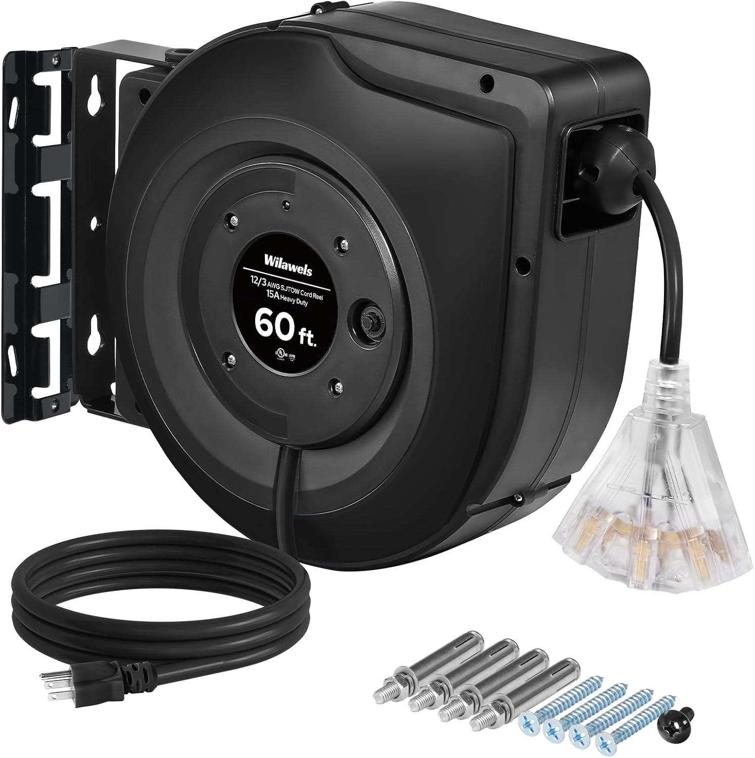 WILAWELS 60 FT & 75 FT Retractable Extension Cord Reel Bundle, Heavy Duty Extension Cord, Wall/Ceiling Mounted, UL Listed H60CR06-A75CR06