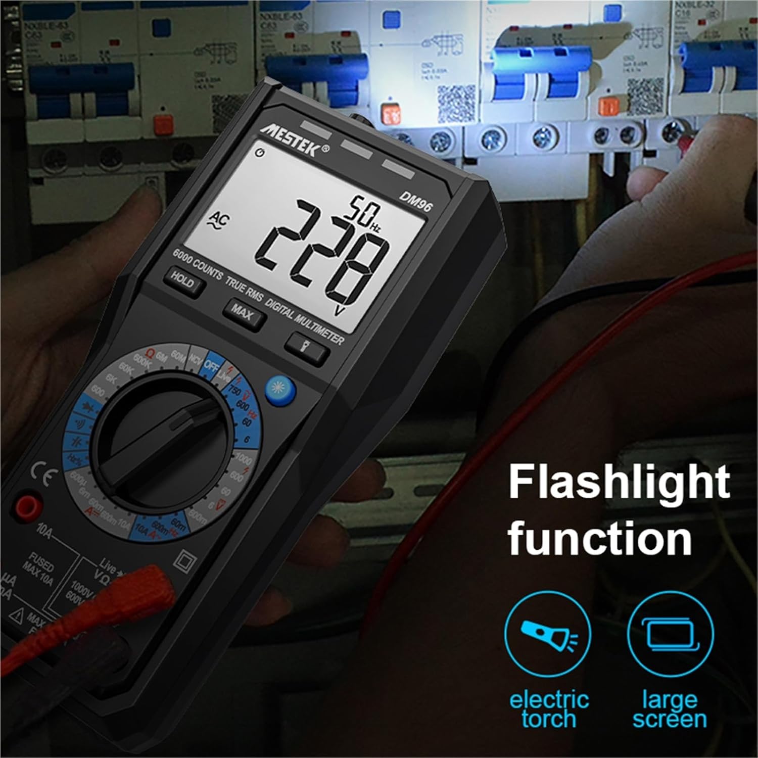 Multi TestersModel Number : DM96Place of Origin : Guangdong, ChinaDimensions : 184*88*50mmFeature : otherLow Battery Indicator : YesMax. AC Current : 10AMax. AC Voltage : 750 VMax. DC Current : 10AMax. DC Voltage : 1000 VMeasuring Capacitance Range : multimeter digitalMeasuring Inductance Range : multimeter digitalMeasuring Resistance Range : 0-60MOperating Temperature : -20~1000Power Supply : 2*1.5V AAColor : Blacksize : 184*88*50mmsampling time : about 15minutes