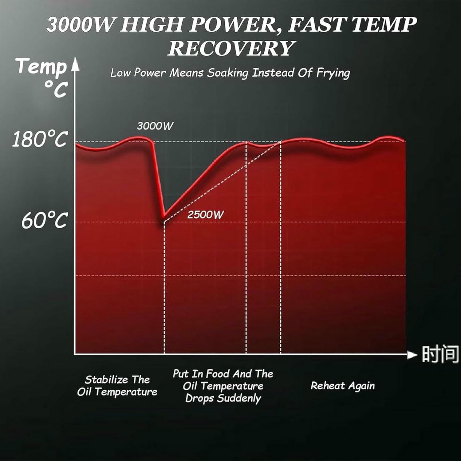 Features:Solid construction, made of heavy duty stainless steel;Temperature indicator light displays when the fryer is heating the oil;Heating pipe distributes even and quick heat;Lid cover prevents the boil oil splashing and safely covers the oil when not in use;Fryer basket with plastic handle prevents scalding of your hands and brings safe and simple use;Thickened tank for long-term use, can be detached for simple cleaning;Great for cooking French Fries, onion rings, egg rolls, fried chicken, perfect for home and commercial use.Specifications:Maximum power: 3000W * 2Voltage: 110V/220VTank capacity: single tank: 10L * 2/10.5QT * 2Temperature range: 60°C - 200°C (140°F - 392°F)Machine size: 22.4 x 18 x 12"/57 x 46 x 30.5cmPot size: 12.8 x 10.4 x 5.9"/32.5 x 26.5 x 15cmBasket size: 8.1 x 7.3 x 3.9"/20.5 x 18.5 x 10cmMaterial: Stainless SteelPackage included:1 x Deep Fryer2 x Stainless Steel Basket2 x Stainless Steel Lid CoverNotes:1-2cm error might exist due to manual measurements, please kindly understand. The colors deviation might differ due to different monitor settings.