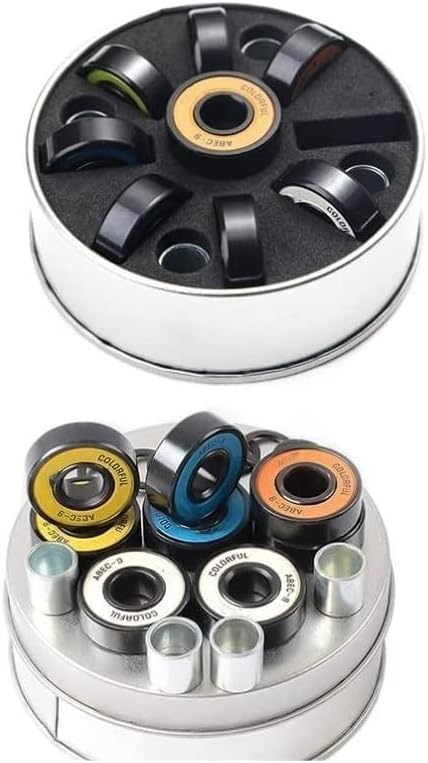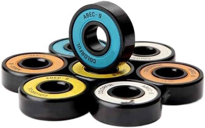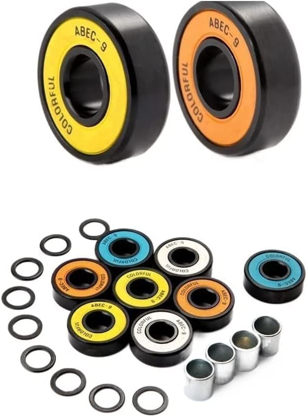 BearingThe package contains 16pcs bearings,4 sleeves, 8 slipsModel: 608 2RSSize: 8x22x7mmMaterial Type: Titanium plating craft(7 chrome steel beads with surface black)Accuracy: ABEC-9Features: Suitable for fancy skateboards, longboard skateboard bearings suitable for brushing the streets.
