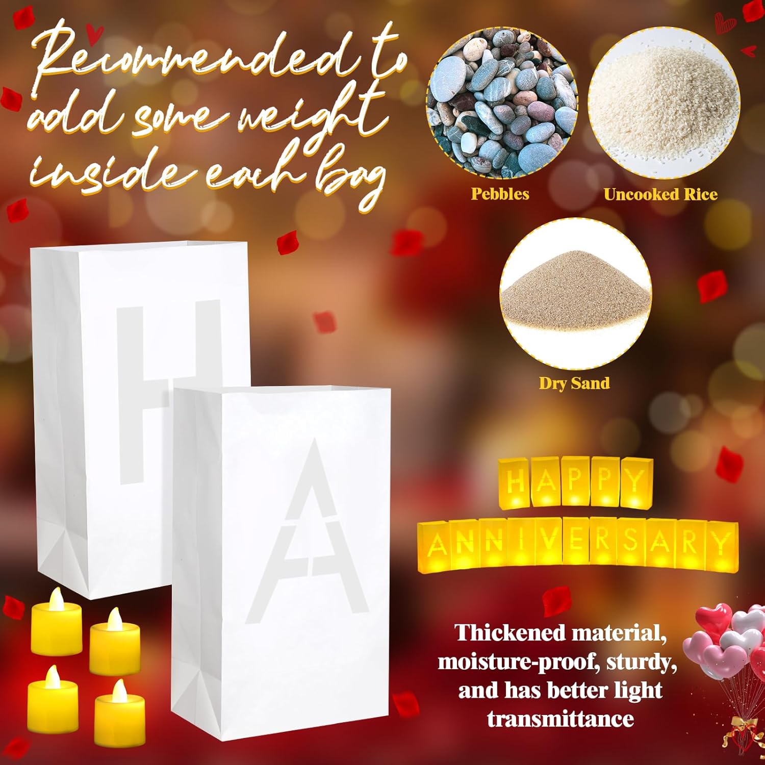 | Special Feature | Flameless, Decorative with Rose Petals |