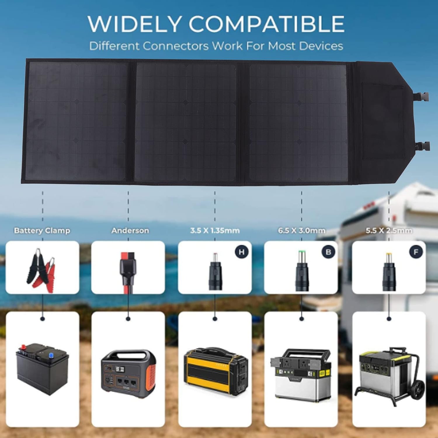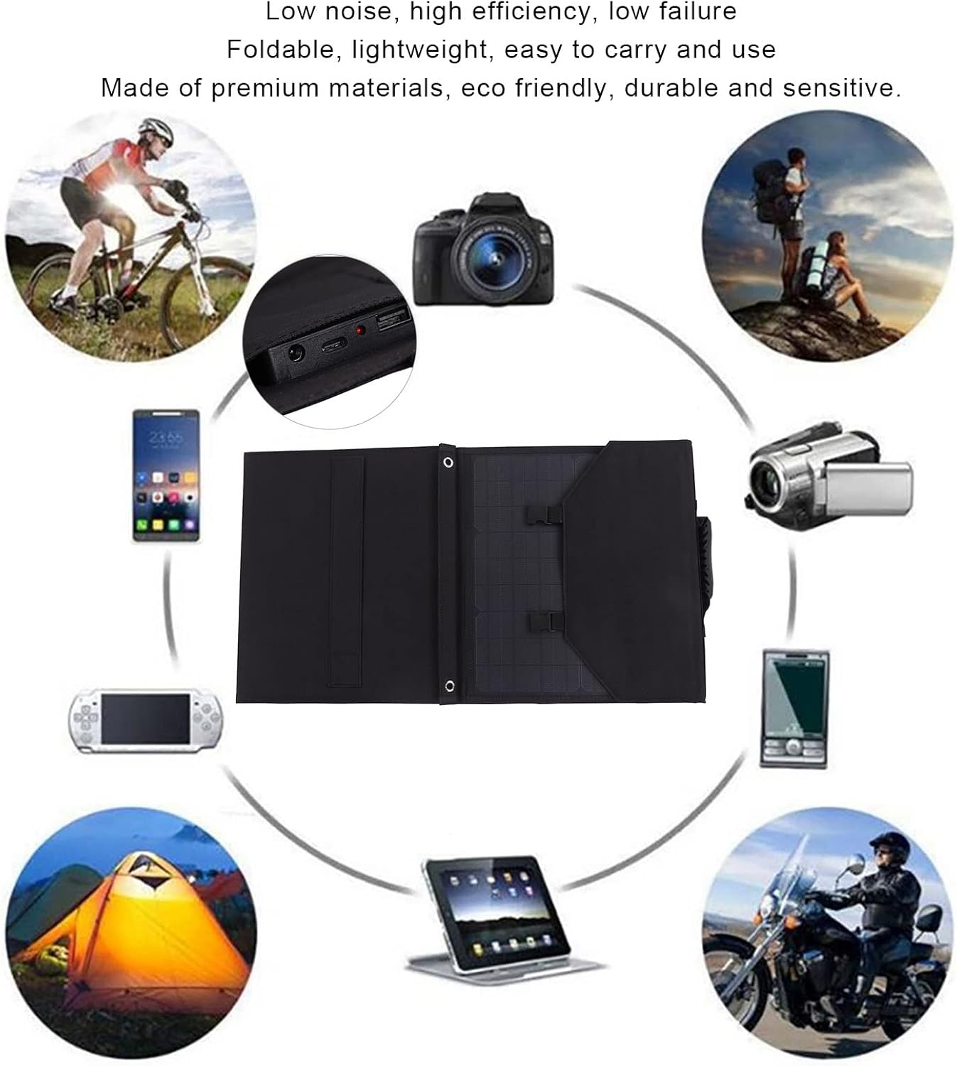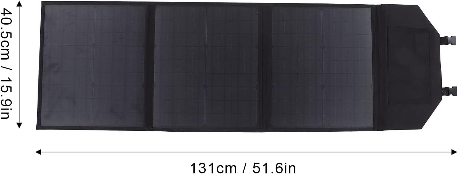 Specification : Item Type : Foldable Solar PanelGross Weight : 2600g / 91 . 7ozProduct Development Size : 131x40 . 5cm / 51 . 6x15 . 9inParameters Maximum Power : 60W Open Circuit Voltage : 20VMaximum Power Voltage : 18vShort Circuit Current : 3 . 5AMaximum Power Current : 3AOutput : USB DC5521 18VMaterial : Monocrystalline silicon , Oxford clothScope of Application : Security cameras , laptops , car batteries , cars , tourist vehicles , ships , outdoor farming , planting , tourism , solar street lights , etc . Package List : 1 x Foldable Solar Panel 1 x Cigarette Lighter1 x Clip1 x Digital Converter1 x Double Ended DC Cable10 x Accessories