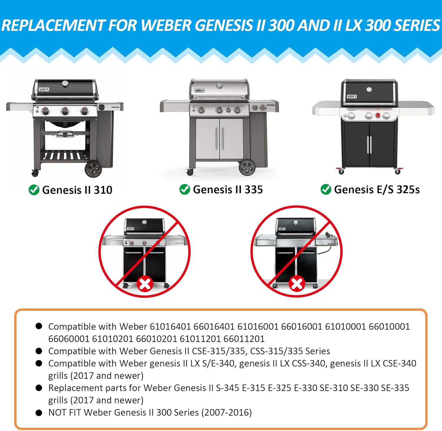 BBQ Gourmet System Cooking Grate Replacement for Weber Genesis II 300 and Genesis II LX 300 Series Gas Grills, Cast Iron Grid Grate Perfect for Weber Genesis II S/E-310 315 320 335 【BBQ Gourmet System Grate for Weber Genesis II 300 Series】 Gourmet system cooking grates perfect for Weber genesis II 300 series grills parts BBQ gourmet system grate accessories replacement for Weber Genesis II S/E 310 335 grill grid grates parts. Cooking grates fits for Weber Genesis II S-345 E-315 E-325 E-330 SE-310 SE-330 CE-330 SE-335 grills (2017 and newer). Essential BBQ gourmet system grid grates for Weber genesis II 300 series grill. 【Cooking Grill Grid Grate for Weber Genesis II LX 300 Series】 BBQ cooking grill garte for Weber genesis II LX 300 series grills parts. BBQ gourmet system grate accessories replacement for Weber Genesis II CSE-315/335, CSS-315/335 series grill. Gourmet system cooking grates perfect for Weber genesis II LX S/E-340, genesis II LX CSS-340, genesis II LX CSE-340 grills (2017 and newer). Essential BBQ gourmet system grid grates for Weber genesis II LX 300 series grill.【What You Get】 Package include 3-pack gourmet system grates. 2 pcs rectangle cooking grates, 1 pcs round grill grid. Circular grill grate with a diameter of 12", one of rectangle grill grate measure 18 3/4"(L) x 16"(W), another measure 18 3/4"(L) x 10"(W). Cast iron Gourmet system grates sturdy construction and heat-resistant, durable and long-lasting, high temperatures of the Weber grill.【BBQ Gourmet System Grate Function】 BBQ gourmet system cooking grate provide a stable and even surface for cooking food, ensuring that it cooks thoroughly and evenly. Furthermore, the gourmet system grill grate grid also prevents the food from coming into direct contact with the flames or hot coals. Desirable grate mark adding aesthetics. If you have any questions about the products, please feel free to contact us.