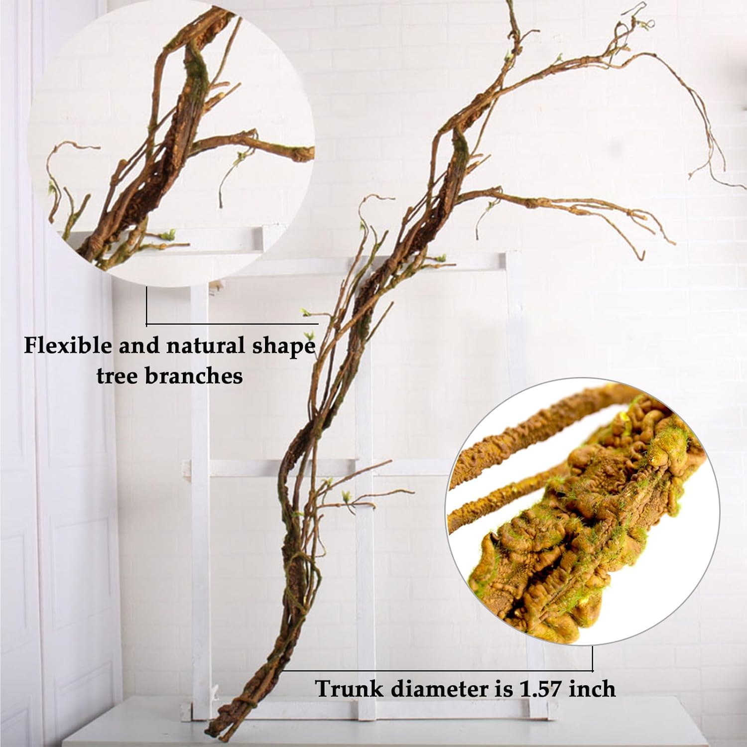 • 【Specification】Whole length is 170cm /66.9 inches, comes one main trunk with many small branches. The diameter of main trunk is about 4cm/1.57 inches. There is iron wire all over the tree vine so that to be malleable and easy to bend.