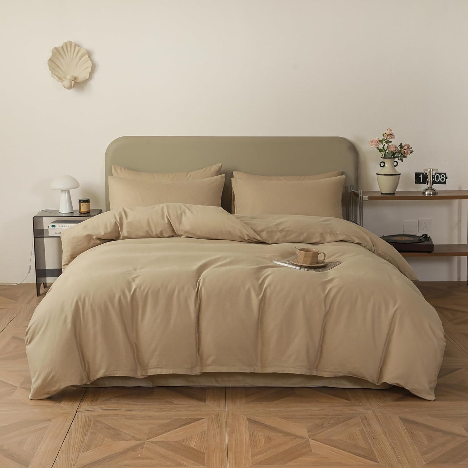 Soft, breathable, and naturally textured — this solid washed cotton duvet cover set is made for those who love understated elegance. The fabric is pre-washed for a beautifully lived-in look and a luxuriously soft touch that only gets better with time. Lightweight yet durable, it delivers a relaxed aesthetic while keeping you comfortable in every season. Effortless to care for and irresistibly cozy, it turns your bed into a calm, inviting retreat where simplicity meets sophistication.