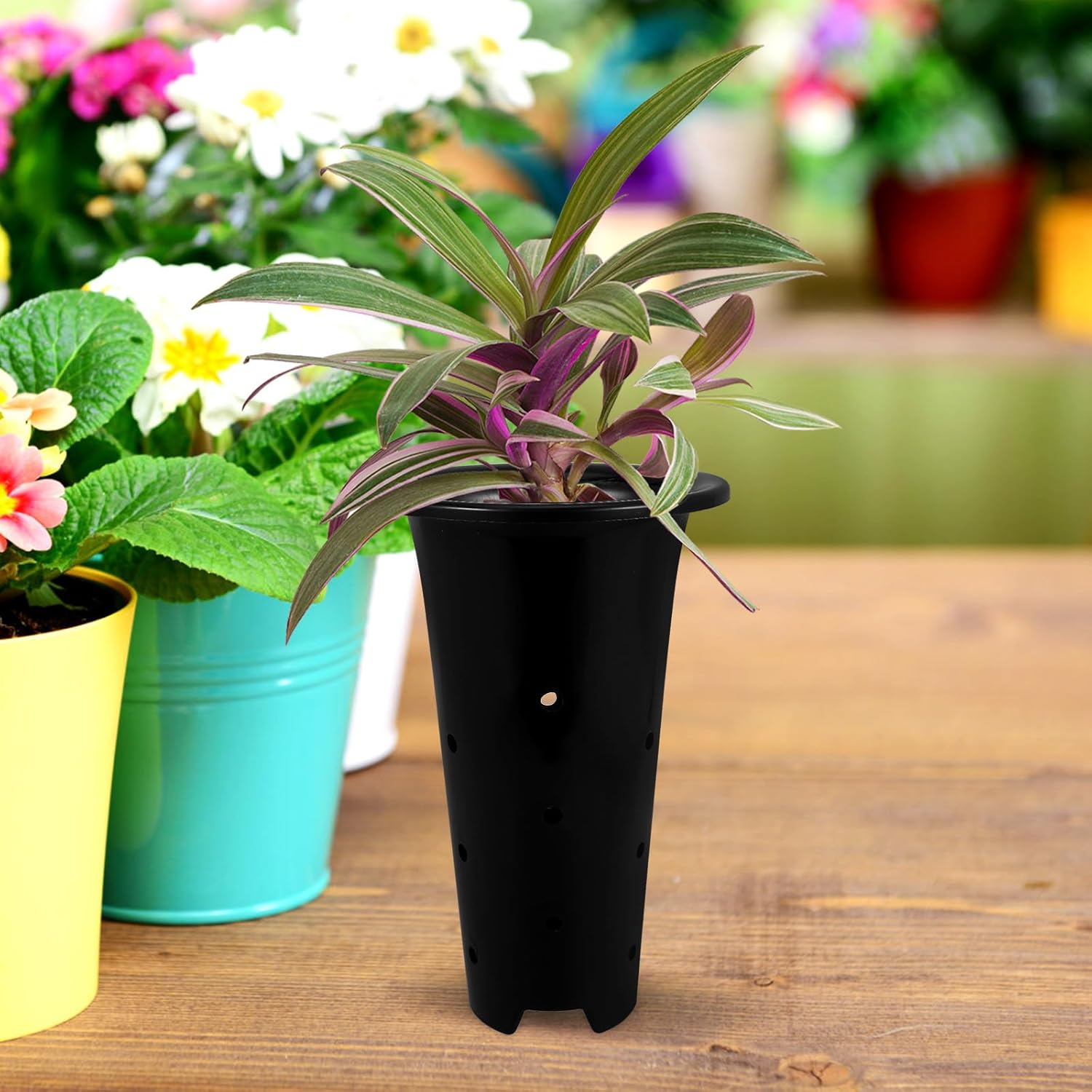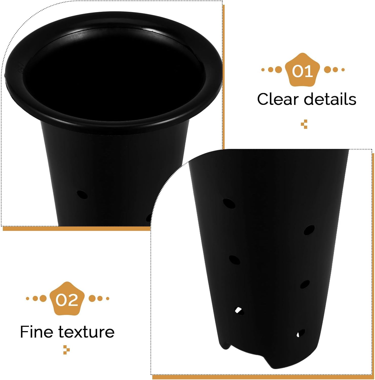 Package List 6 x flower pots with holes Characteristics - Color: Black -Product Info:Orchid pot -Outer diameter:150mm pot for tree -Material:PP - Size: 24.00X15.00X7.80cm/9.43X5.89X3.07in -Designed for orchids and other garden plants, these pots create an optimal growing environment for delicate species orchids pot. -Raised orchid pots offer increased root space, encouraging stronger and more resilient plant growth for your garden pot for plants. -Equipped with drainage holes, these pots promote proper water management and airflow, keeping plants healthy and thriving flower pots. -These versatile pots are for both indoor and outdoor use, seamlessly blending with any garden or home decor pots for orchids. -The thickened edge design provides a luxurious feel and enhances the pot's grip, making it easier to handle and move planter pots for indoor plants.Goods Informationdeep plant pot Experience of our high-rise orchid pots, which offer increased space for plant roots.tree pots The drainage holes prevent waterlogging and promote aeration, essential for the well-being of your plants.large nursery pots for plants The reinforced rim not only enhances durability but also provides a premium feel when handling the pots