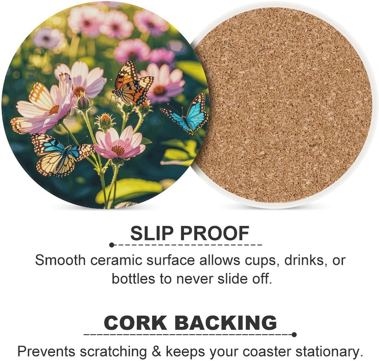 Transform your daily hydration into a stylish and protective ritual with our Cute Ceramic Coasters with Cork BottomDrink Coasters for Home Cup Mats for Table Rustic Coasters Round Coasters Unique Coasters Vintage Coasters Art Teacher Gifts Round Drink Coasters for Hot Cups Funny Coasters Outdoor Coasters for Patio Table Waterproof Bar Coasters Non-Slip Table Coasters Absorbent Coasters Ceramic Car Coasters for Cup Holders Ceramic Cup Holder Coaster for Car Cool Coasters Pretty Coasters White Wine Coasters Housewarming Gifts CoastersSuitable Size:Heat resistant coasters for drinks arr crafted from ceramic and finished with a natural cork base, each coaster is as practical as it is sustainable. The 4.1-inch round size is perfectly proportioned to sit under a variety of glassware - from your favorite coffee mug and ceramic teacup to tall glasses of iced tea or bottles of beer.Double Protection:The heat-resistant ceramic top acts as a shield, guarding your cherished wood tables, kitchen countertops, and office desks against hot beverages, unsightly water rings, and condensation . Meanwhile, the soft, non-slip cork bottom plays a dual role: it prevents the tea coasters from sliding around when you reach for your drink, and it ensures your furniture remains free from scratches and scuffs.Multi Purpose: Whether you're decorating a coffee table in the living room, adding a functional touch to a home office, or setting up a bar cart for entertaining, these decorative coasters are the perfect blend of utility and subtle style.Material: Ceramic & CorkSize: 4.1 inches (Diameter)Care: Wipe clean with a damp cloth.Designed for the modern home, these heat resistant cup mats blend functionality with minimalist aesthetics to keep your surfaces pristine.