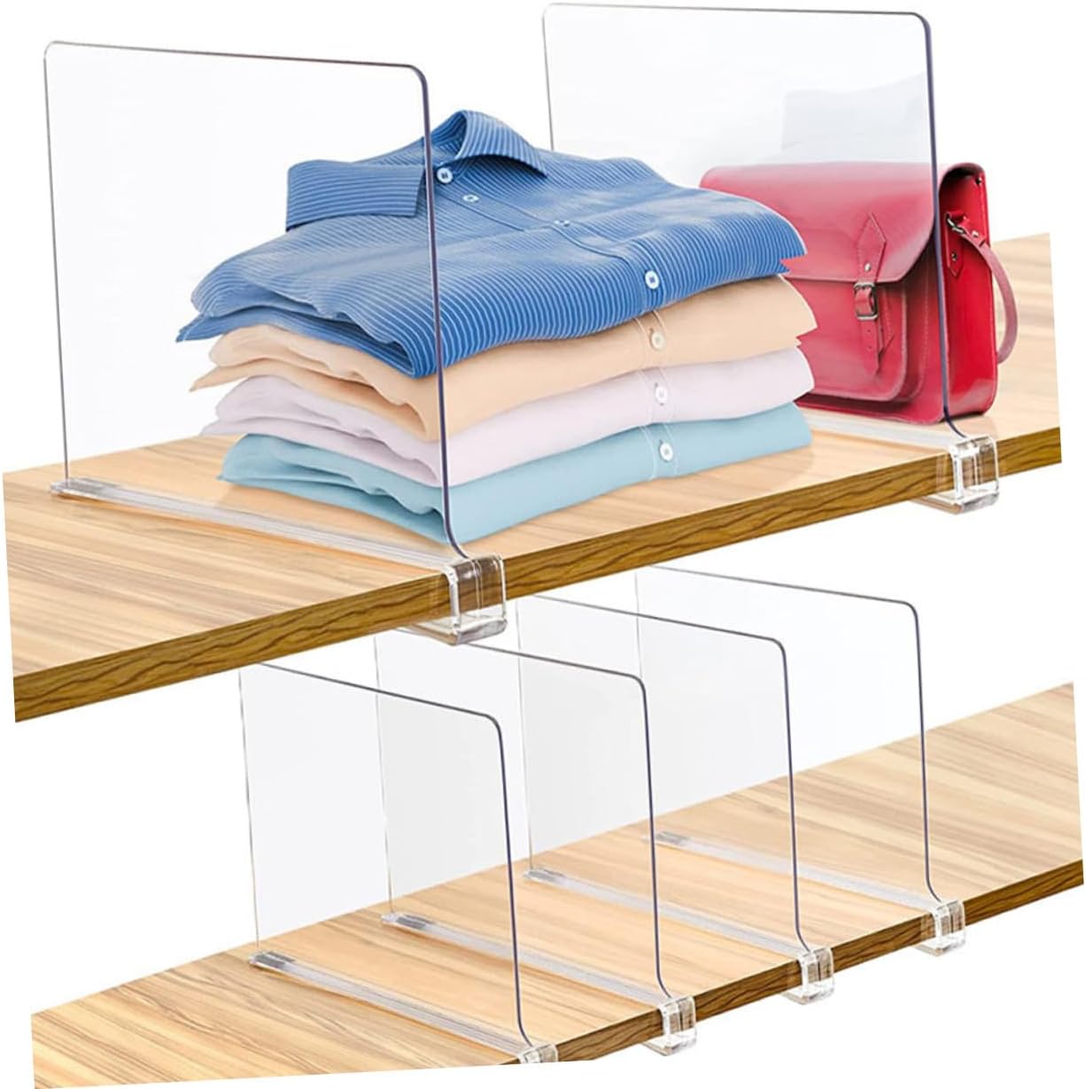 Package List 6 x Shelf Dividers Characteristics -Size:30.50X20.50X3.00cm/11.99X8.06X1.18in -Color:Transparent -Product Info:Storage board -Material: -Create compartments in the drawers to keep everything in order, convenient to use for your home Closet Divider. -Made of reliable and strong material, very , practical and simple for long-term use. -This clear divider allows you to classify your closet, to make full use of the storing space shelf dividers for shelves. -Suitable for wardrobe, kitchen, office storage to maximize closet storage space Closet Separators. -Adoption the unique design, they will not destroy the interior decor, make your closet neat and tidy clothes dividers.Goods Informationclothes divider Not just for your closet, shelf dividers are also perfect for your kitchen cupboards or pantries to keep goods separated and organized.shelf dividers for shelves Use craft rooms to keep supplies in their place.Home Shelf Organizer For Closet And more besides, you can also use it in the office to tidy up notebooks, binders or books
