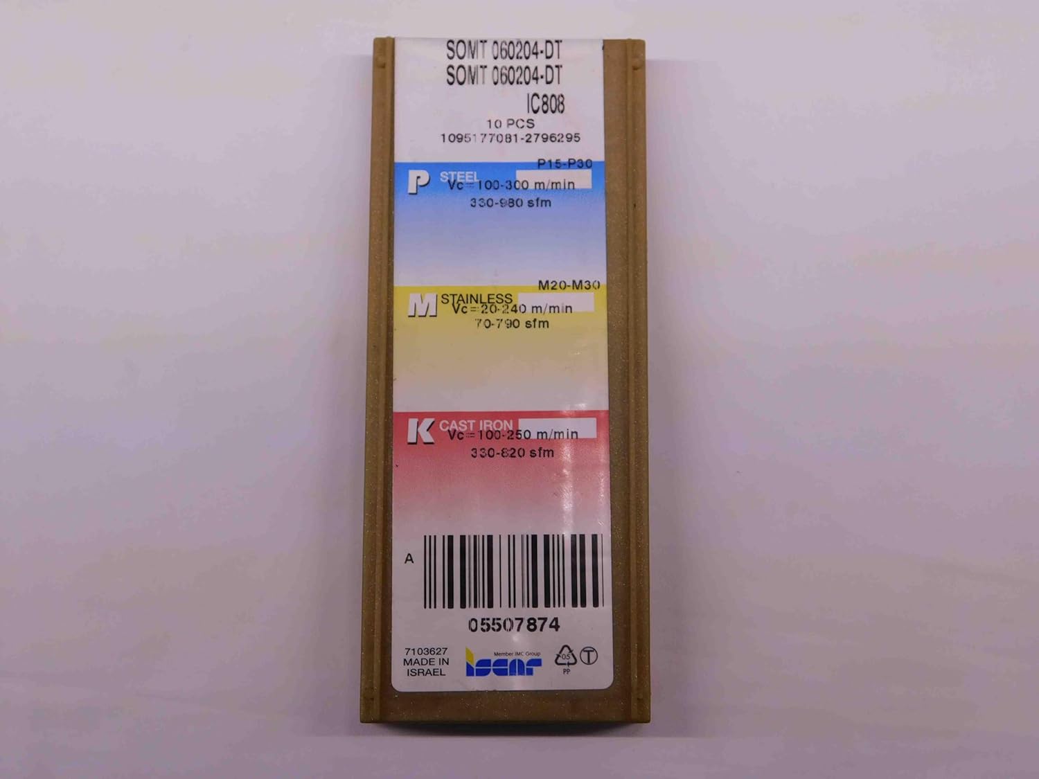 YOU ARE PURCHASING THE PICTURED 6 INSERTSSOLD BY M & J TOOLING LLCDAYTON, OHIOPRODUCT SPECIFICATIONS:CONDITION: NEWMATERIALCARBIDECOATINGTiNSIZE / LABELING:SOMT 060204-DT GRADE IC808MANUFACTURER / BRAND:ISCARTHANK YOU FOR YOUR BUSINESS!LOCATION:WB4-2-8-9