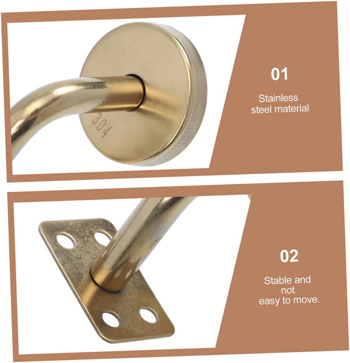 Package List 6 x handrail brackets Features -Color:Golden stair railing supports -Size:7.00X5.00X5.00cm/2.75X1.97X1.97in stair railing bracket -Material:Stainless steel metal handrail bracket - Easy to install by the compact size and light weight. Stable and to move, strong support ability hand railing brackets. - and sturdy stainless steel material, these handrail brackets are strong resistance, to crack or deform handrail bracket. - Bright color, strong artistry, decoration and usability, the unmissable choice for modern home decoration stair rail bracket. - Handrail bracket is used to mount railings to stair walls, can better keep the handrails safe stair railing support bracket. - Widely used for fire corridors, handrails, railings, building handrails, indoor and outdoor handrails, guardrails, stairs, etc stairway railing brackets.Goods Informationstair case railing indoor Using stainless steel materials, can provide strong support for your handrail.indoor railings for stairs Are you looking for a professional and portable handrail bracket? Or whether you are in search of a sturdy, trustworthy stairway railing bracket that can meet your needs? , ! Our handrail bracket must meet your needs