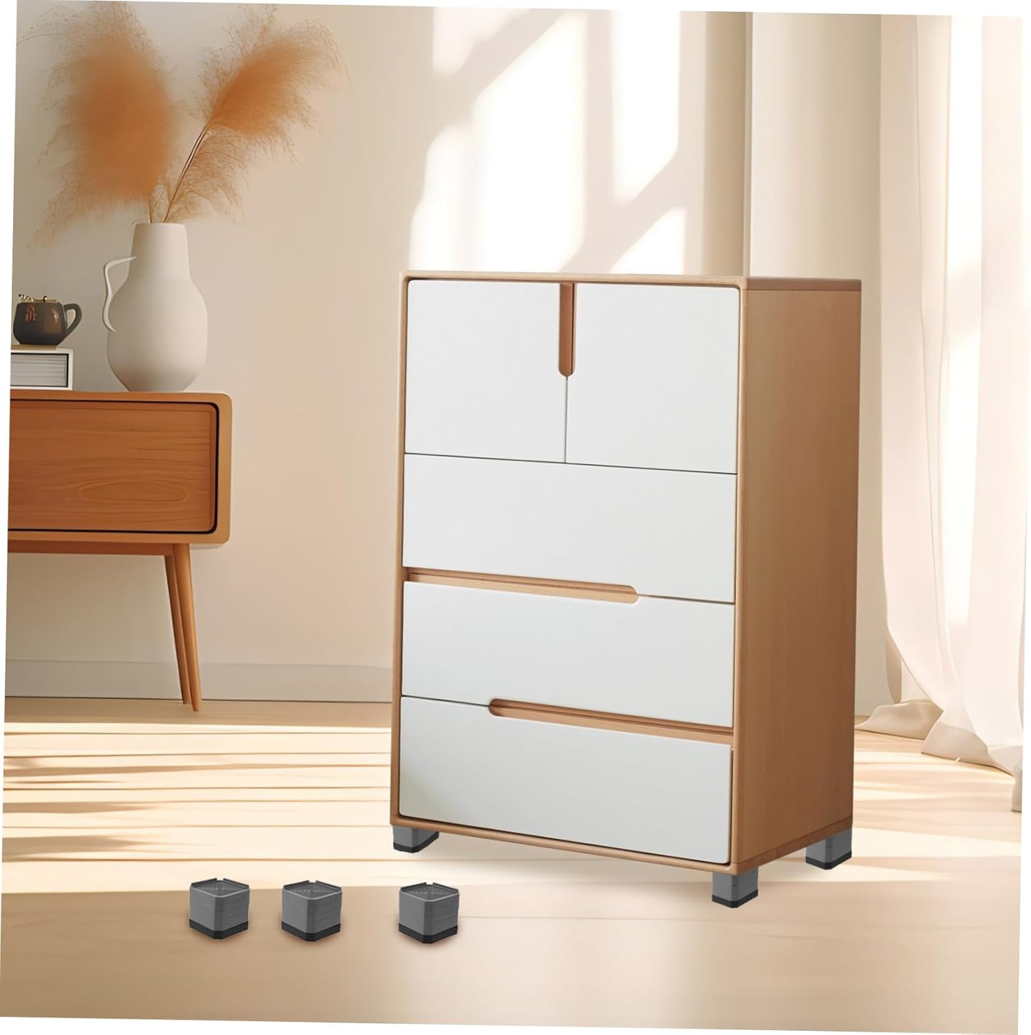 Package List 6 x bases for furniture feet Features -Height enhancement: the elevated design furniture height, making it easier to clean and maintain the area underneath, better cabinet riser -Versatile application: suitable variety of furniture including tables, chairs, coffee tables, refrigerators, and washing machines, protecting both floors and furniture bases bed lifts risers -Shock absorption: these plastic pads offer excellent shock absorption, minimizing friction and damage between furniture and floors, extending the lifespan of both bed risers -Antislip design: made from durable plastic, these pads prevent furniture from sliding, ensuring stability and safety in your home couch risers -Material:Plastic bed riser - Size: 8.40X8.40X7.90cm/3.30X3.30X3.10in furniture leg risers - Color: Grey sofa lifters or risers -Noise reduction: the pads significantly reduce noise caused by furniture movement, creating a quieter and more peaceful living environment furniture lifterGoods Informationfurniture leg risers These anti-slip, noise-reducing pads are for creating additional storage space or achieving comfortable height for your furniture.bed risers square Simply place the risers under each leg of your furniture to enjoy stable and quieter environment.cabinet riser Our square furniture leg risers are designed to elevate and stabilize your tables, chairs, coffee tables, refrigerators, and washing machines