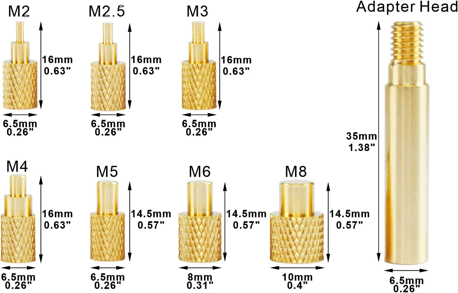 Turn your soldering iron into a dual-purpose tool with this 2-in-1 tip bundle. Get everything you need for both electronics soldering and professional 3D printing—without buying extra equipment. What’s Included: Soldering Tip Kit – 5 stainless steel tips (TS-C4, TS-K, TS-ILS, TS-J02, TS-D24) + 1 threaded adapter. Perfect for PCB repair and DIY electronics. 3D Printing Insert Tip Kit – 8 solid brass tips for heat-set inserts (M2 to M8). Easily add strong, reusable metal threads into PLA, PETG, ABS prints. Why Choose This Bundle? Save Time & Money – One purchase covers soldering and 3D printing needs. Widely Compatible – Fits TS100, TS101, Pinecil V2, and works with Hakko/Weller style irons (with adapter). Durable & Efficient – Brass tips heat quickly for clean insert installation; steel tips last through precise soldering. Simple to Use – Swap tips in seconds. Ideal for makers, hobbyists, and 3D printing enthusiasts. Upgrade your toolkit today—build, repair, and assemble with professional results.