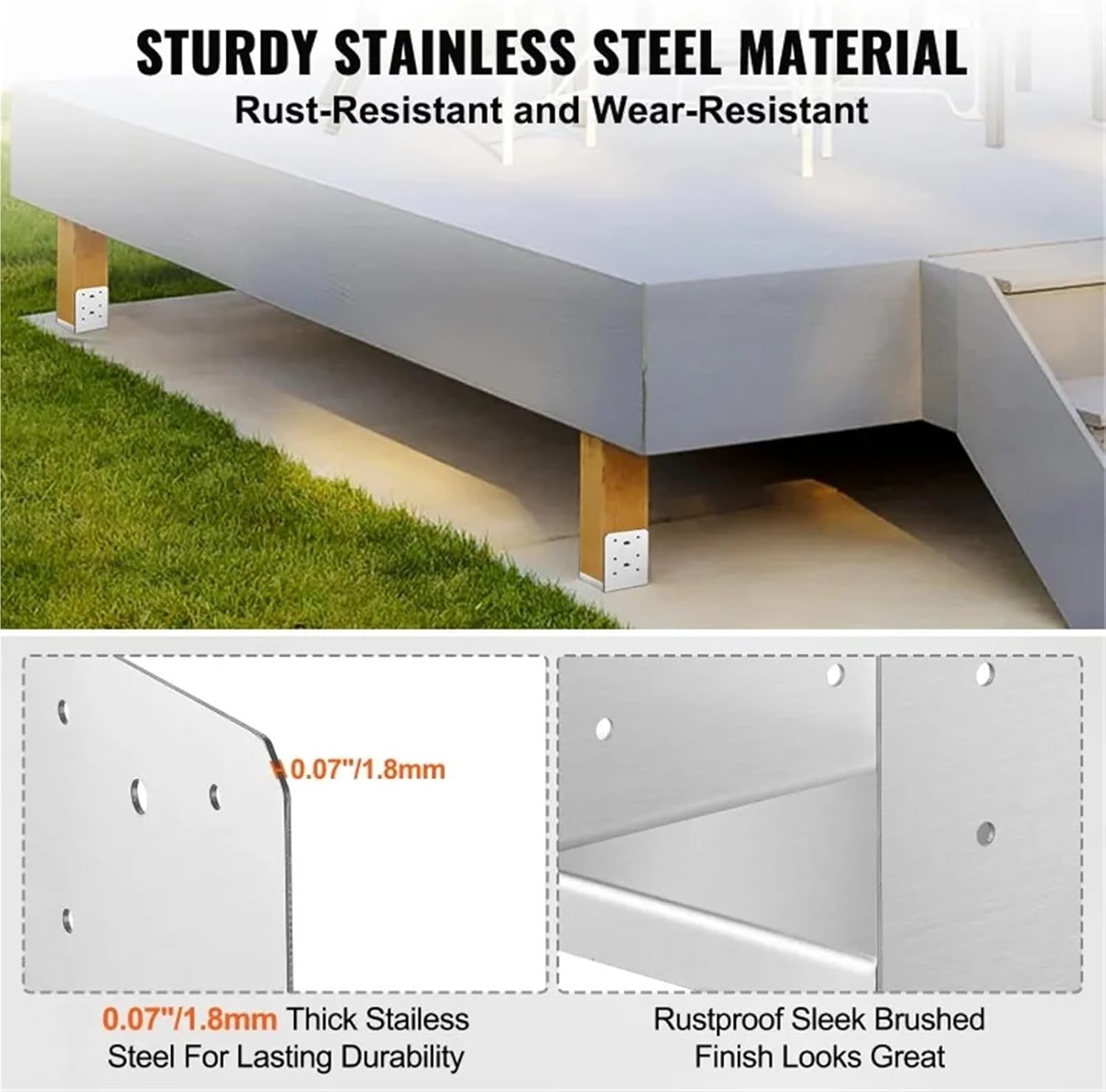 Furniture Parts & Hardware6"x 6" Post Support, Single Pack Stainless Steel Adjustable Anchor Bracket (Internal Dimensions 5.9 x 5.5"), Flexible P