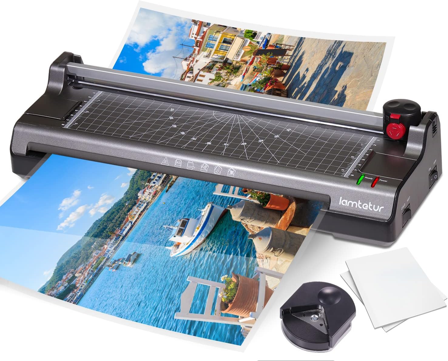 About Upgrade ABS Button Design ABS Button Design may prevent the laminating sheets jam when laminating. ABS button can protect the laminator machine and make the laminating work more efficiency and Safe. Technical Specifications: Maximum Width: 330mm. Ready Time: 2-5 minutes. Laminating Speed: 250mm/min. Power consumption: 365W. Heating System: 2 roller system(supported both thermal Hot and Cold laminating works. Paper Jam Prevention: ABS Button *Warning:* 1,If you use 5Mil laminating sheets, could pls wait more 2 min and then laminating. 2, This laminator can Continue laminating 50pcs paper every time. Don’t forget turn off the laminator machine when finished laminating. Package List: 1 * Laminator machine 2 * 140pcs laminating sheets(8.9*11.4inch) 3 * Instruction 4 *Rounder Corner About Lamtetur Lamtetur is a professional manufacturer of a high-quality Laminator machine, produce hundreds of thousands of laminator every month, from A4 Laminator, A3 Laminator, All kinds and difference types etc. Each of our products is carefully manufactured and tested every day, keeps bringing best quality to customers all over the world!