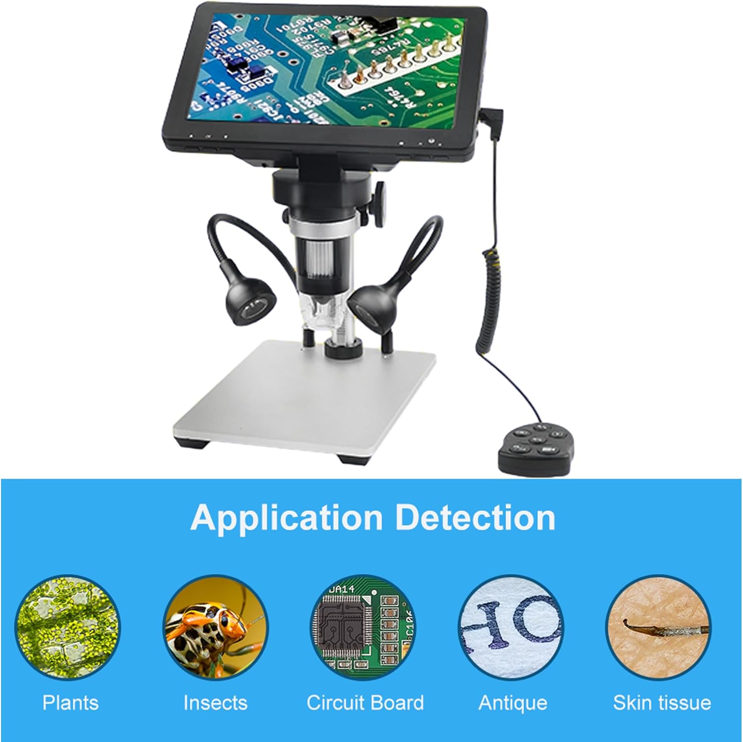 | BuiltIn Media | 7-Inch Digital Microscope DM9, Adjustable Aluminum Alloy Stand, English User Manual, USB Cable |