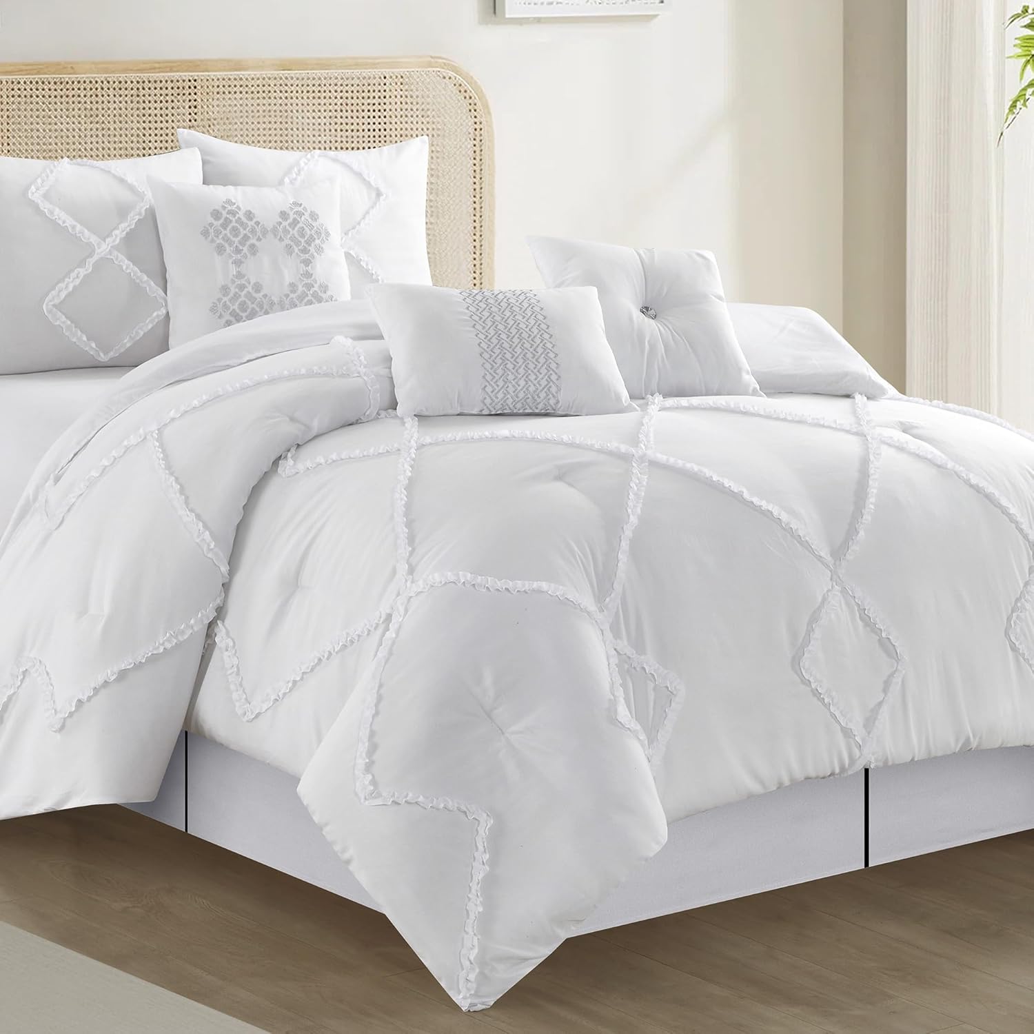 | Included Components | 3 Decorative Pillows, Bed Skirt, Comforter, Pillow Sham |