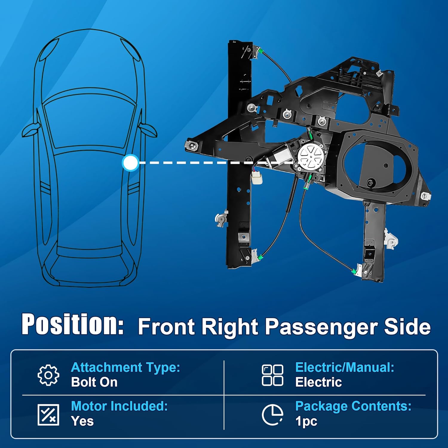 | Included Components | 1x Front right window regulator |