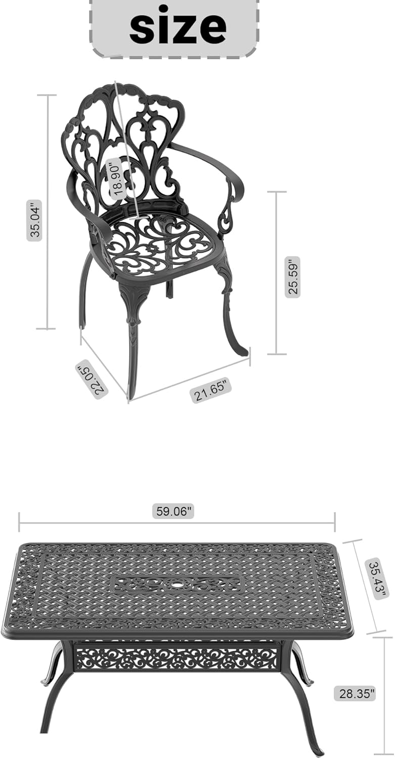 Enhance your outdoor living space with this 7pcs cast aluminum patio set. The durable black finish and weather-cushions ensure comfort and longevity. dining, lounging, entertaining, this stylish set complements any, poolside, backyard setting. Easy to maintain and built to last.