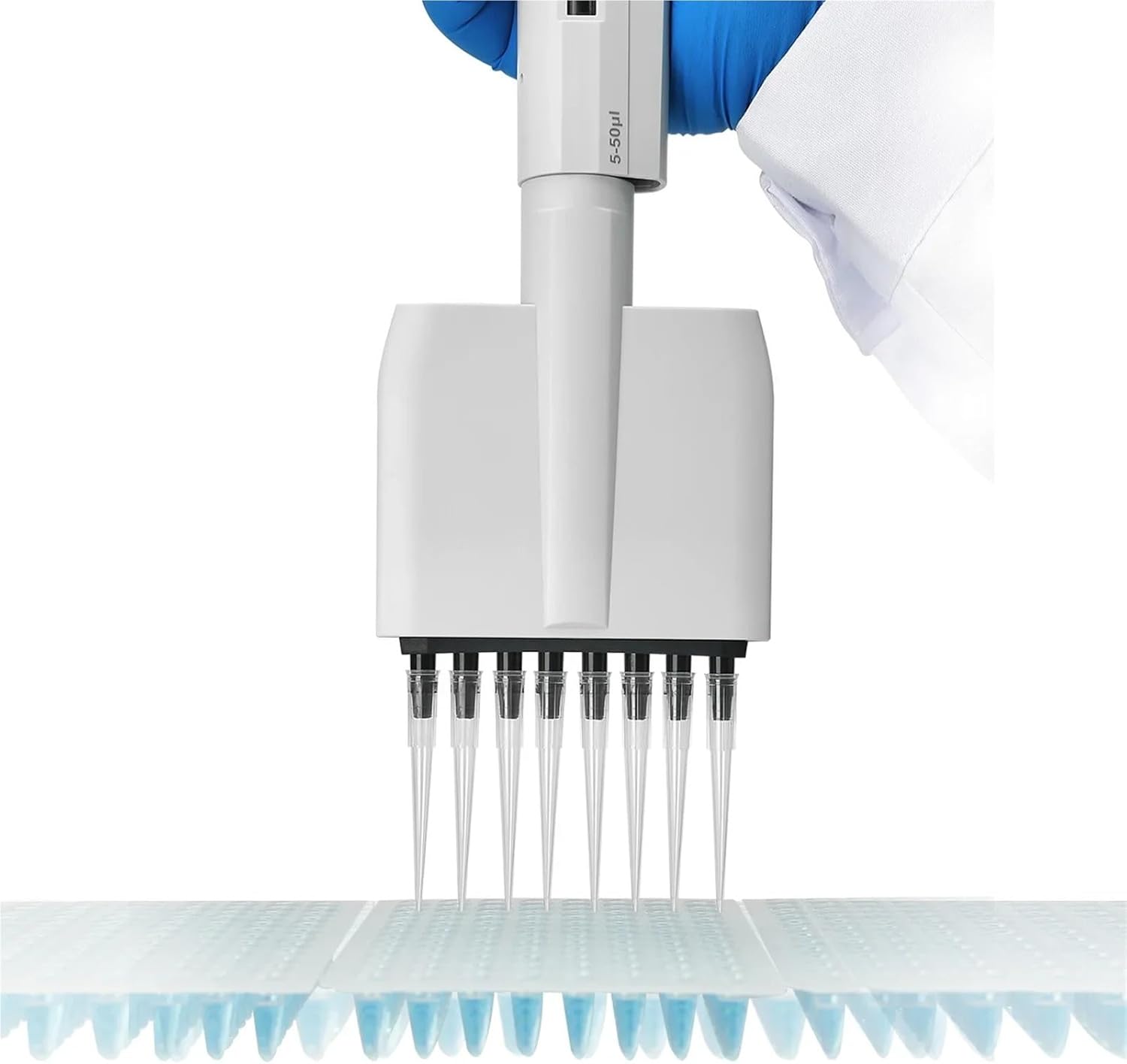 Features:8 channelpipettes are available for standard 96-well plate.Dispensing headrotatesfor pipetting convenience.Individual piston and tip cone assemblies allow easy repair and maintenance.Compound material tip cone design allows visual seal verification.Can be used with universal style pipette tips.Handle hook design, can be easily hung against, easy to pick up lightweight and design in line with ergonomics, feel comfortable, suction and discharge of liquid operating force is light, to avoid repetitive muscle strain injury.