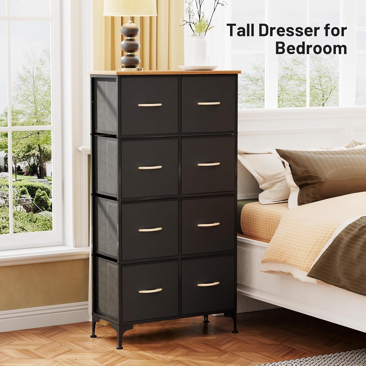 Name: Modern dresser with 8 drawers Dimension: 11.8''D x 26.8''W x 52''H Color: Black