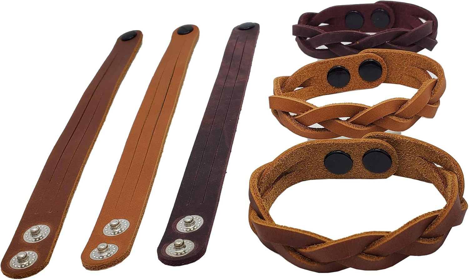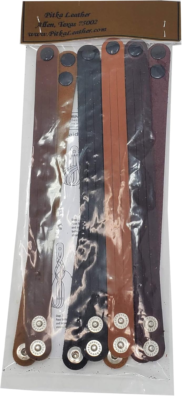 Discover the perfect blend of creativity, style, and versatility with our Adjustable 2-Snap Mystery Braided Leather Bracelets. Made from premium full grain leather, each bracelet features a unique mystery braid design—crafted from a single strip of leather using a technique that looks impossible, but is surprisingly easy and fun to learn. No tools required, just your hands and a little curiosity. What sets these mystery braid leather bracelets apart? The adjustable 2-snap closure offers a flexible fit for all wrist sizes—from kids to adults. Whether you're shopping for yourself, your child, or planning a group activity, the dual snaps make sizing simple and secure. One bracelet, multiple sizes—no guessing needed! These tricky braided bracelets are not only fashionable but also a rewarding DIY project that teaches a valuable craft skill. They’re a hit for camp activities, school crafts, team-building events, and family nights. Great for beginners and experienced crafters alike, each bracelet combines leather craftsmanship with a puzzle-like braiding challenge that’s as satisfying to solve as it is stylish to wear. The adjustable design ensures maximum comfort and wearability for everyone. Stack them, gift them, or wear them solo—these leather wrist accessories offer endless styling options. Choose from one-color or mixed-color sets, and let each bracelet reflect your personality and handmade flair. If you’re looking for a handcrafted fashion accessory that’s both fun to make and practical to wear, our Adjustable Mystery Braid Bracelets are a must-have. With multi-strand looks created from one clever piece of leather, you’ll not only wear a bracelet—you’ll wear your creativity. Try one today and experience the magic of a mystery braided leather bracelet that fits every wrist and every style.