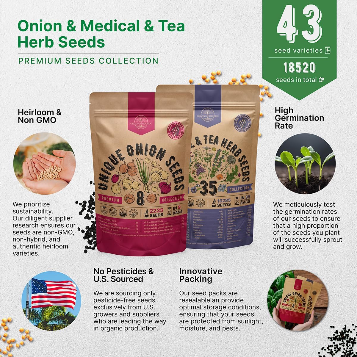 | Style Name | 8 Onion and 35 Medicinal & Tea Herb Seeds Variety |