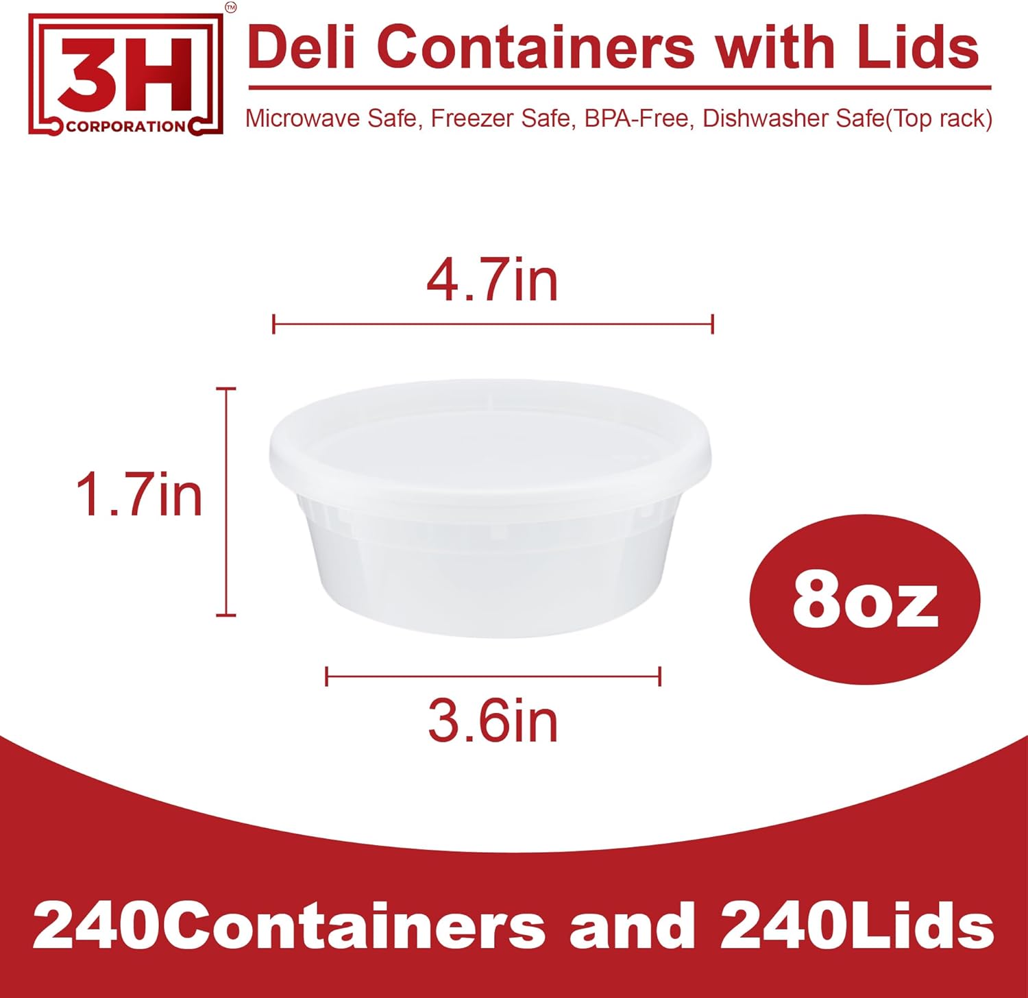 | Included Components | 240 Sets 8oz Deli Containers with Lids |