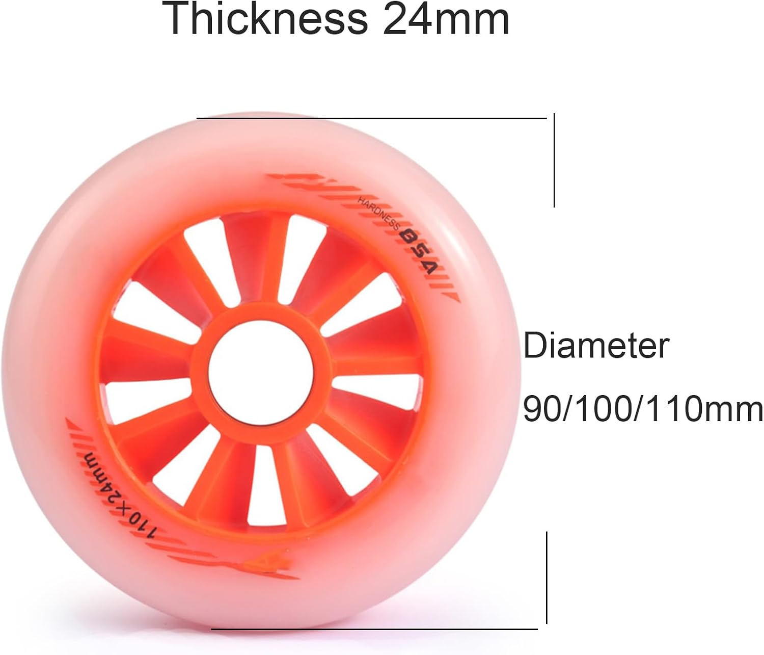 Take your skating experience to the next level with our premium inline skate wheels. With 85A hardness, these wheels are perfect for both indoor and outdoor roller skating, providing an excellent braking effect and enhanced safety. They offer superior grip performance, allowing you to skate smoothly even in wet conditions. The wheels are designed to reduce friction and increase speed on various surfaces, giving you a comfortable footing while maintaining a high skating speed. They are not only durable but also have a noticeably lower wear rate, offering you high grip performance for a long time. Available in 90/100/110mm (diameter), our inline skate wheels are compatible with most roller skates.