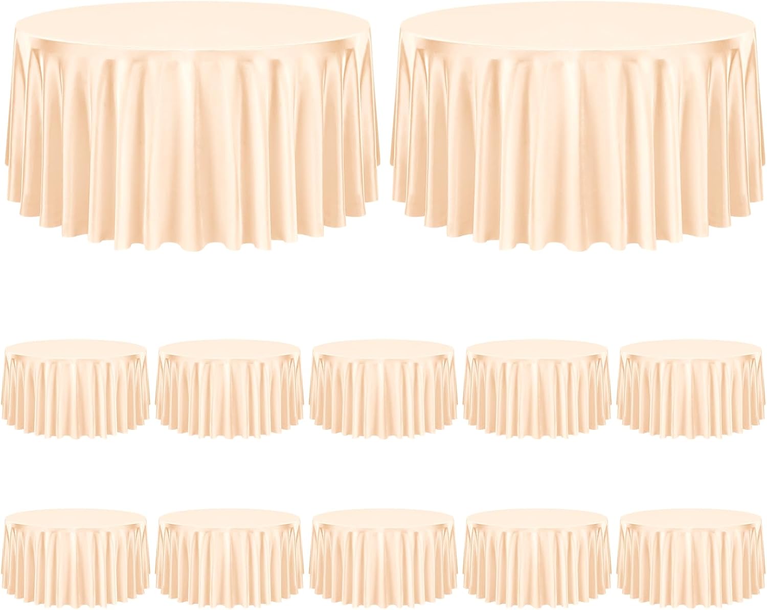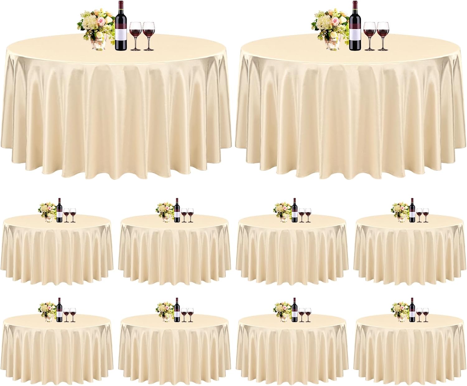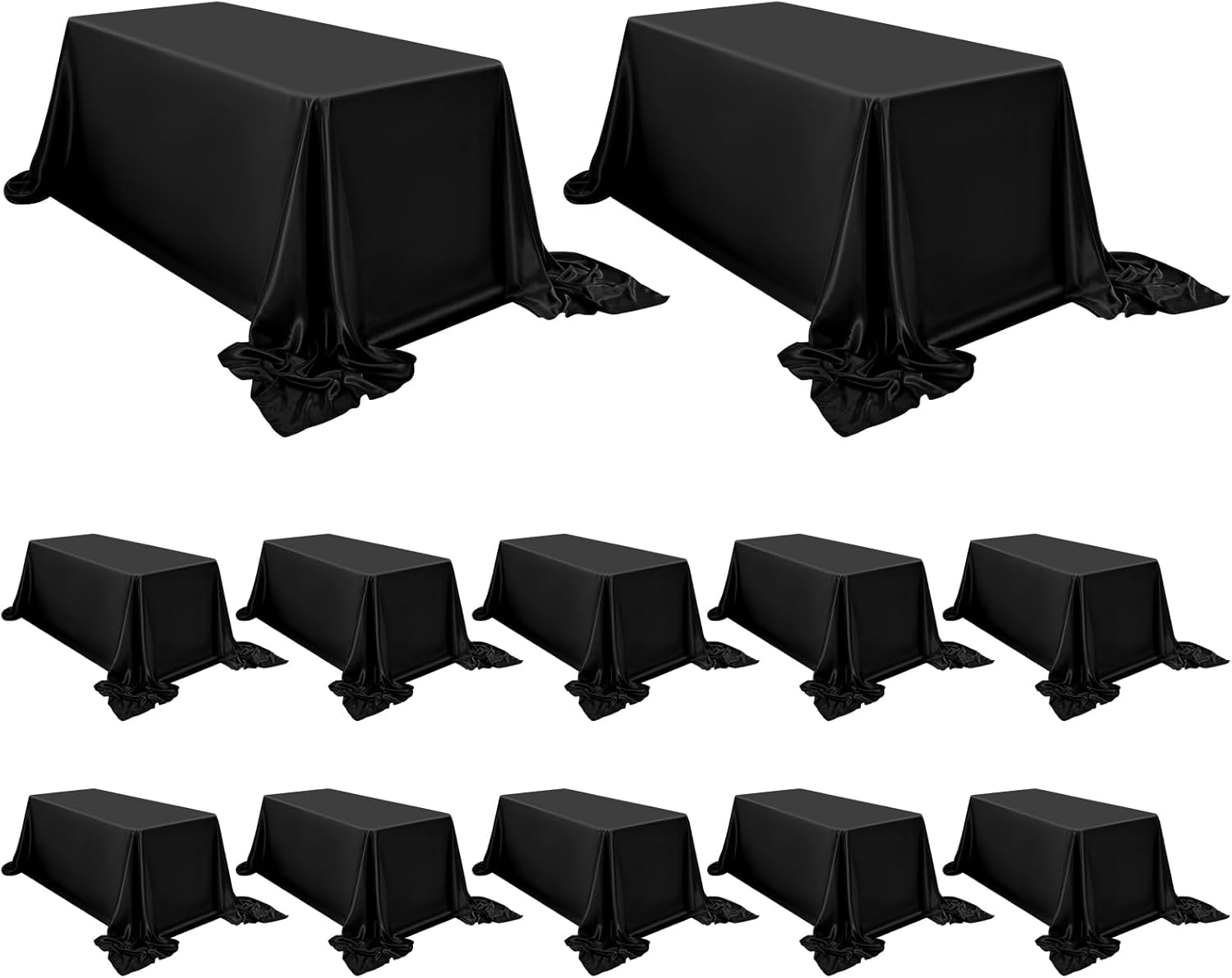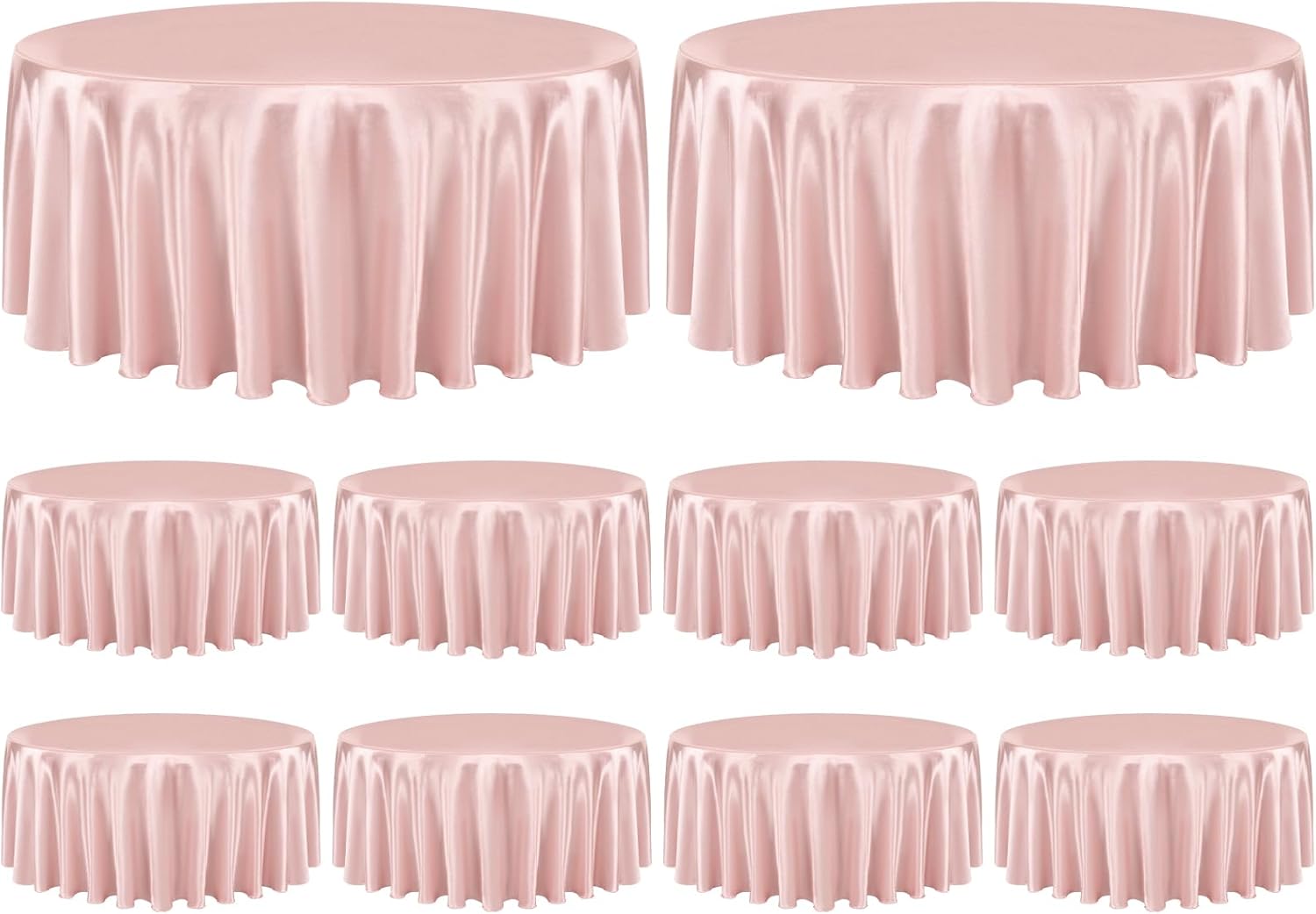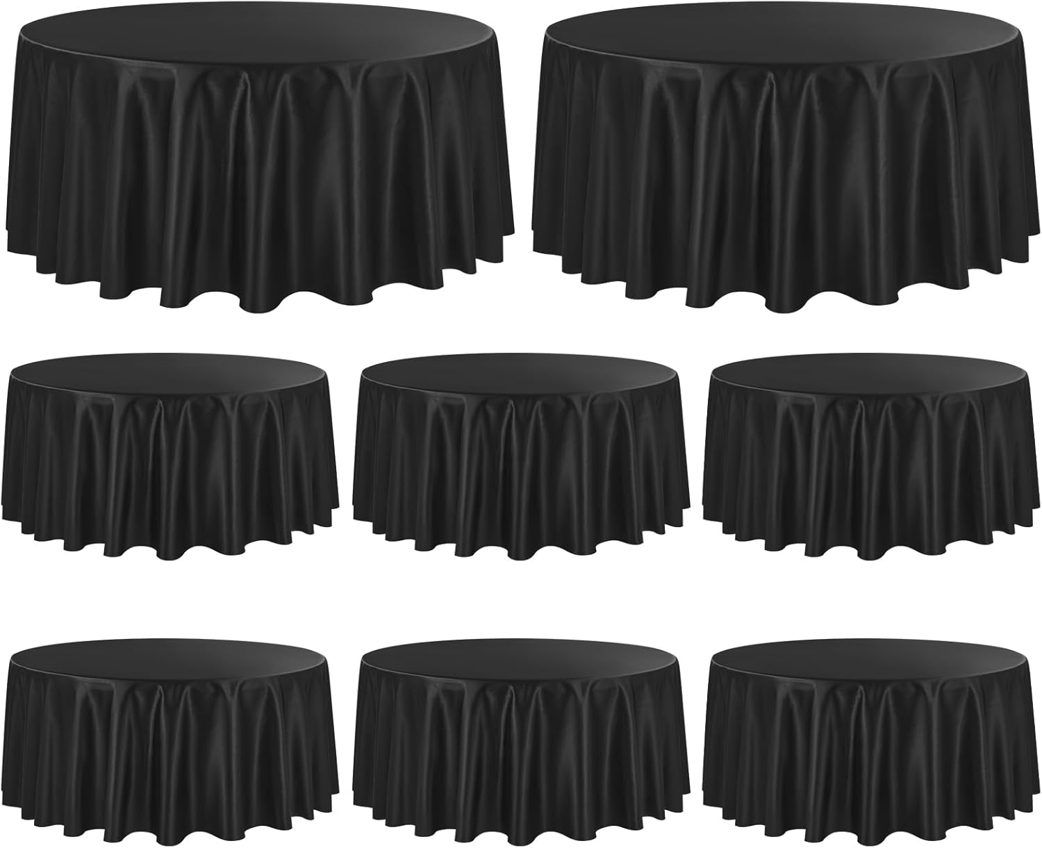 Our rectangular tablecloth features a seamless design for an elegant look.Our satin fabric table cloth complements any dinnerware, simple and versatile. 90 x 156 inch satin tablecloths are popular in weddings and special events due to their glimmering, silky-soft beauty.Tablecloths are made of satin and are designed to be stain resistant, and can be laundered countless timesThey are designed to line with the most common tables in banquet halls and wedding reception centers, which are standard rectangular tables with a height of 30 inches and a length of 96 inches.Specifications:Material: 100% SatinColor: SilverDimensions: 90 x 156 inchesThickness: 180 gsm.Package includes8 X Satin TableclothHow to choose a suitable tablecloth for your table?Measure the wide/length of the tableTablecloth Length = Table Length + Drop Length x 2Tablecloth Wide = Table Wide + Drop Length x 2Tips:This is a wrinkle resistant tablecloth. If you find wrinkles in the tablecloth, it is because it was folded and packed. Don't worry. Simply press flat with a low temperature iron to restore the original appearance.Machine washable with cold water in gentle cycle. Use normal detergent. Bleach is not recommended. Don't wash with other materials. Wash like colors together. Tumble dry with low temperature. Warm Notice:1. Manual measurement, there will be an error of 1-2cm.2. The color of the display screen of mobile phone and computer is different, there will be color difference, please understand.3. If you have any questions about the purchase or use of the product, we will provide you with solutions to solve the problem.