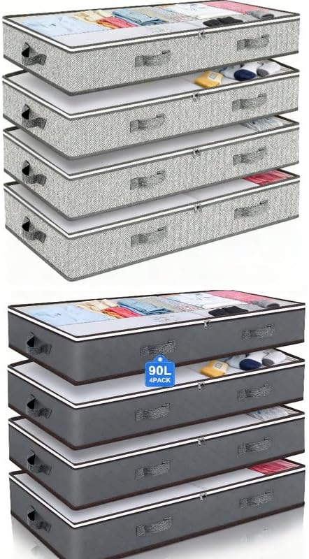 This 8-pack under bed storage bin is designed to maximize your under-bed space, perfect for organizing and storing clothes, blankets, comforters, shoes and seasonal items.Equipped with a clear top window, dual zippers and reinforced handles, it allows you to quickly identify contents, easy to open and close, and convenient to carry or pull out.Made of durable lightweight material, it keeps items clean, dust-free and well-protected, ideal for bedrooms, closets, dormitories and home storage.