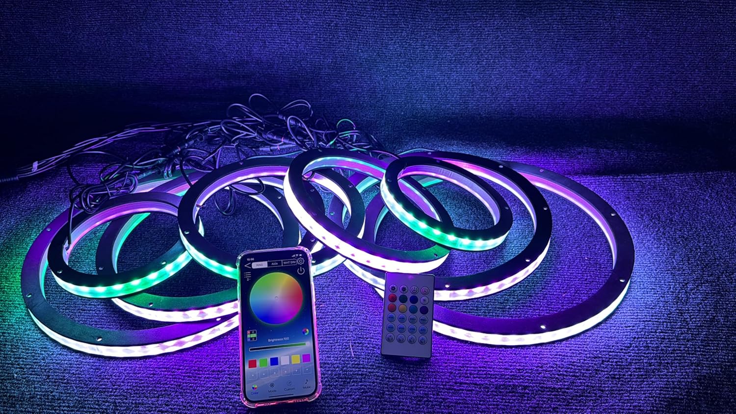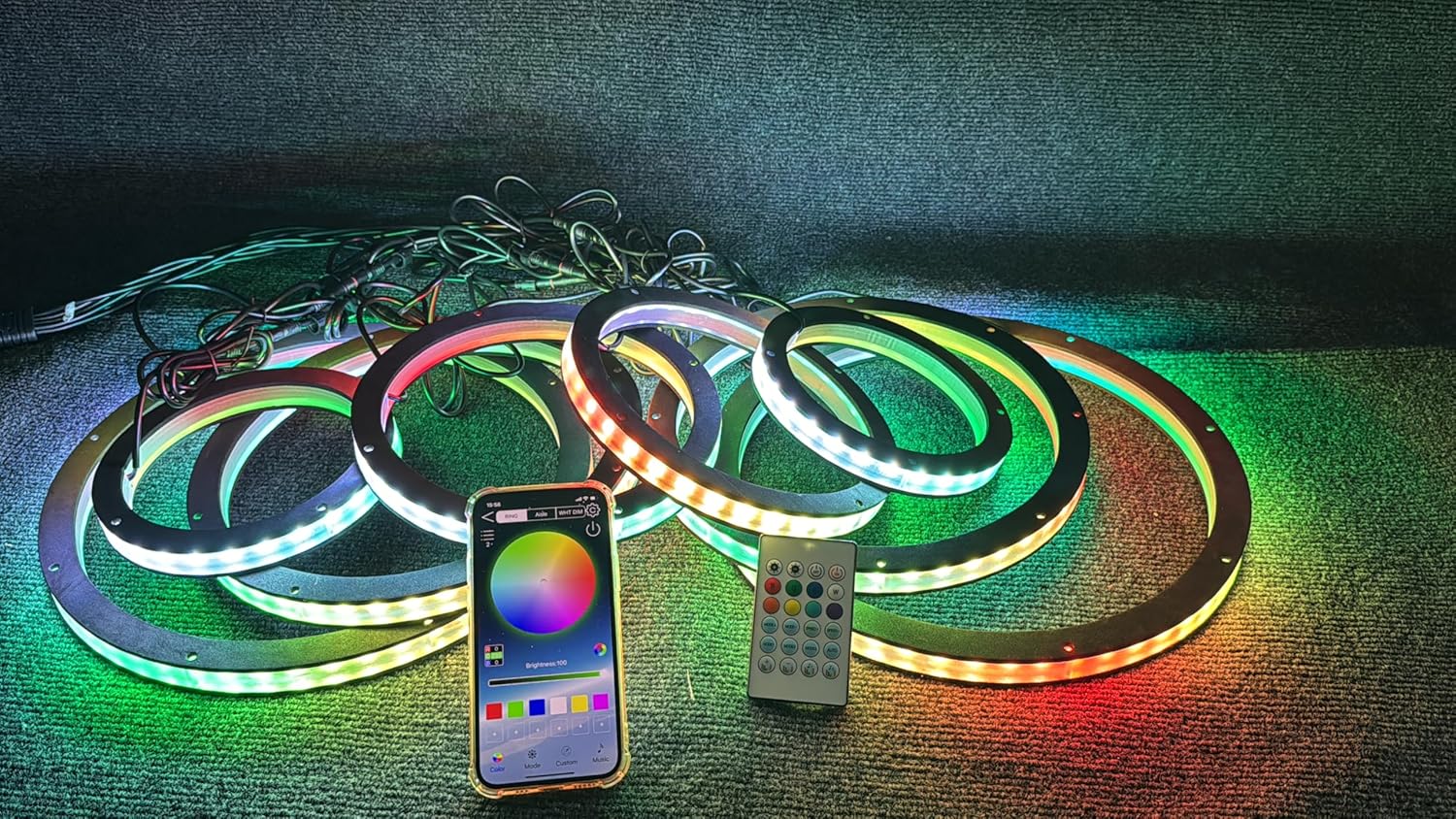 | Included Components | 1PCS - Remote, 1pc Bluetooth Controller Box + splitters, 8pcs Speaker Rings Lights |