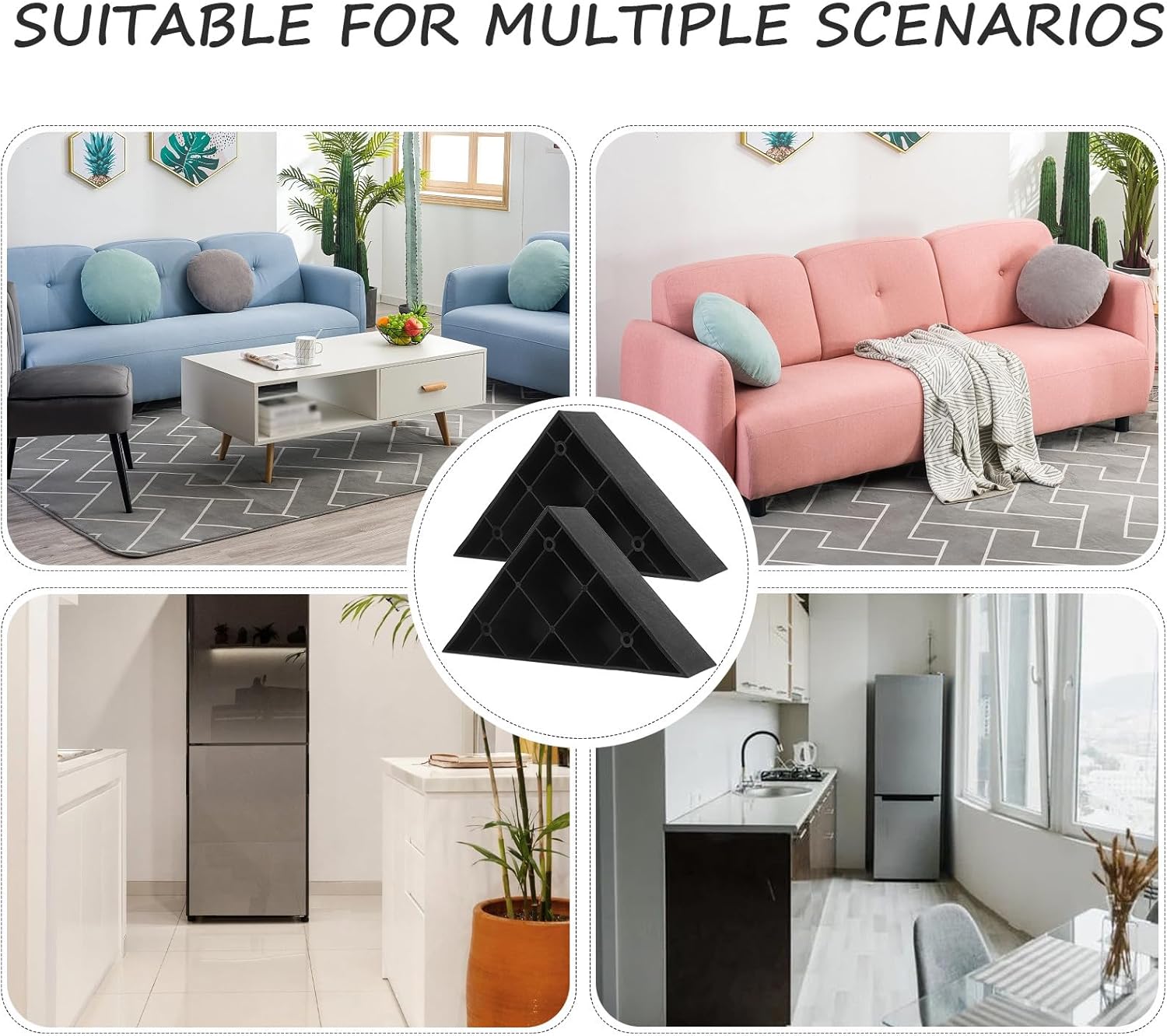 Package Include 8 x furniture legs x screws Features -Size:14.60X14.60X4.10cm/5.74X5.74X1.61in -Durable construction: made from plastic, these furniture legs are built to last, providing longterm support and stability for your furniture kitchen cabinet feet -Height enhancement: these chair leg risers elevate your furniture to a more comfortable height, improving ergonomics and making it easier to sit and stand coffee table feet -Easy to install: designed for quick and easy installation, these replacement legs can be easily attached to your furniture without the need for special tools or professional help furniture feet -Color:Black -Material:ABS -Product Info:Furniture legs -Nonslip design: the nonslip feature of these furniture feet ensures your furniture stays in place, providing added safety and preventing accidental movement coffee table legs -Aesthetic upgrade: the wood grain finish on these plastic legs adds a touch of elegance to your furniture, enhancing the overall look of your living space desk legsGoods Descriptionchair leg risers Our plastic furniture legs are an for those looking to replace or upgrade their furniture legs.sofa triangular footrest The ensures even weight distribution and stability, while the realistic wood grain finish adds a touch of elegance.furniture feet cover ideal for sofas, chairs, and tables, these legs are both practical and stylish
