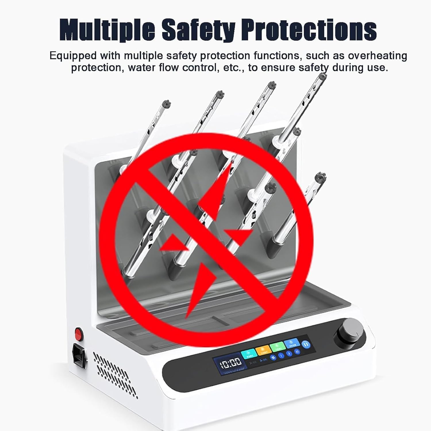 Introducing our premium Lab Glassware Dryer, designed to enhance your laboratory efficiency while ensuring optimal drying performance. This state-of-the-art dryer features an impressive fan speed range of 300 to 5000 RPM, allowing you to customize airflow to suit your specific drying needs. With a powerful heating capability of 800W ± 15%, you can achieve air outlet temperatures ranging from room temperature to 65°C, making it versatile for various laboratory applications. The Lab Glassware Dryer employs an electric heating wire for consistent and reli heating, while the DC brushless motor ensures energy efficiency and low noise levels at ≤ 45dB, creating a comfort working environment. Its intuitive timing range allows for precise control, offering options from 0 to 1 hour or unlimited time settings, catering to both quick drying tasks and prolonged drying processes. Constructed with a dur stainless steel shell and a convenient plastic draining t, this dryer is not only built to last but also easy to maintain. With its compact size of 32cm x 28cm x 22cm and a lightweight design of just 4.8kg, it seamlessly fits into any lab setup without occupying too much space. Included in the package are various duct configurations to accommodate all your glassware drying needs: five large ducts (17x180mm) and six medium ducts (12x180mm). Elevate your laboratory experience with our Lab Glassware Dryer, the perfect solution for efficient and effective drying of lab equipment. Enjoy the benefits of faster turnaround times and improved workflow in your laboratory today!