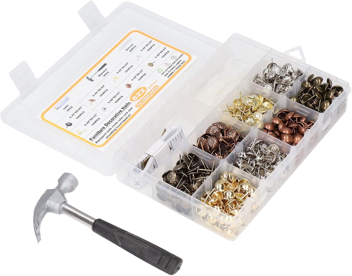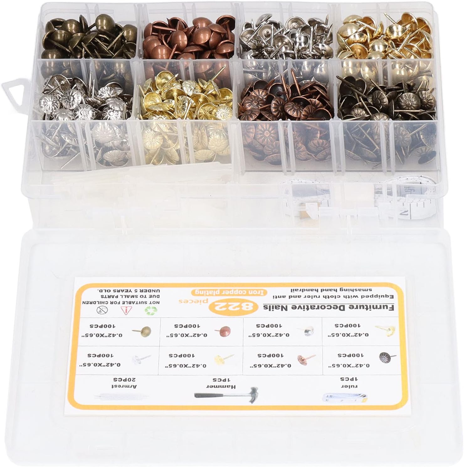 Item Type: Upholstery TackMaterial: Carbon steelColour: Bronze, copper, gold, silver, chrysanthemum bronze, chrysanthemum copper, chrysanthemum gold, chrysanthemum silverNail Diameter: Approx.11mm/0.4inNail Length: Approx.16mm/0.6inCloth Ruler: Can measure 60in or 150cmQuantity: 100pcs bronze, 100pcs copper, 100pcs gold, 100pcs silver, 100pcs chrysanthemum bronze, 100pcs chrysanthemum copper, 100pcs chrysanthemum gold, 100pcs chrysanthemum silverPackage List:800 xUpholstery Tack1 x Cloth Ruler1 x Hammer20 x Anti Smashing Bracket1 x Storage Box