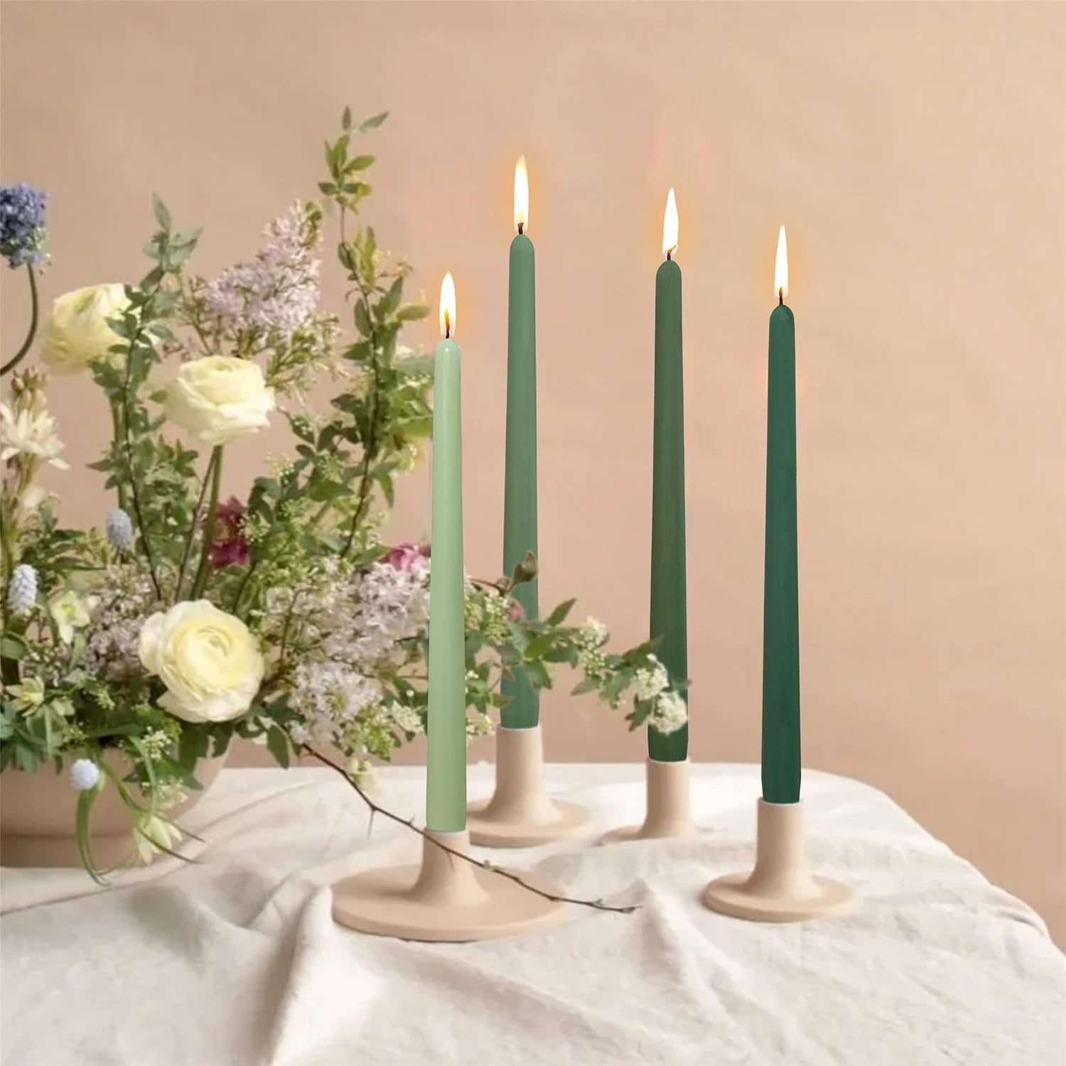 SMOKELESS and ENVIRONMENTALLY FRIENDLY: Candle Sticks Made with high purity paraffin, clean cotton wicks and eco-friendly dyes.White Candles are burning smoke free, without releasing soot and other contaminants. UNSCENED and ODORLESS:Dinner Candles are generally non drip, unless they are in a breezy space or placed at an angle onto the candle stick and spiral candle are unscented,keeps your home clean from toxic fumes and unpleasant smells HANDMADE:Each of our spiral taper candles is individually handcrafted by skilled artisans, ensuring a unique and high-quality Candle sticks Long-Lasting Burn: Our spiral taper candles feature a graceful spiral shape,it will have a long-lasting burn time, so you can enjoy their warm glow for hours on end. UNIQUE GIFT:Twisted Candlesticks features wax ingredient and ocean ripple shape, suitable for any interiors from Scandinavian minimal decor to a colourful boho settings. Spiral Taper Candle makes a perfect dining accompaniment, and a perfect gift for Lover,Mother,and Friends