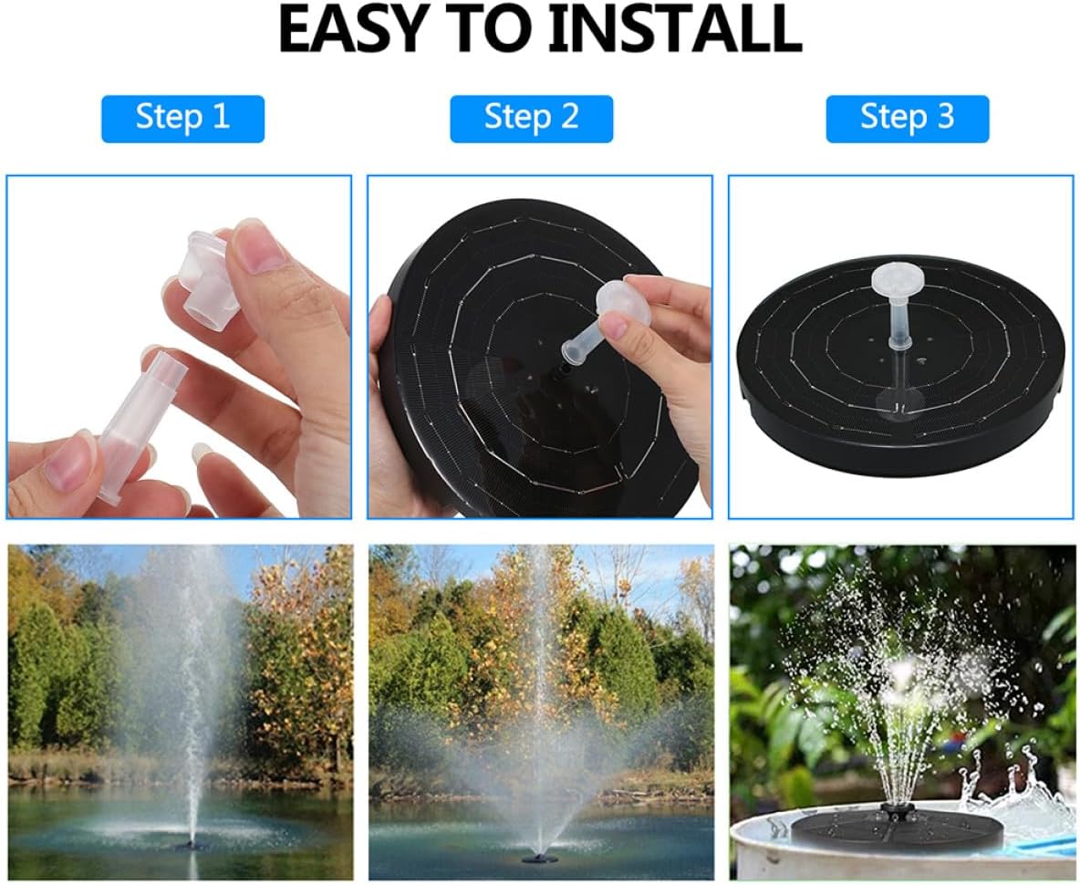 Package List 1 x manual 6 x nozzles 1 x fountain pump Features -Product Info:Solar fountain Solar panel power: 3.8W pond floating pump Solar panel voltage: 4.5V bath fountain motor Number of colorful lights: 5 LED breathing colorful lights Maximum lift: 130cm small water pump -Color: As Shown, Random Pattern Solar Panel -Material: ABS Maximum height: 60CM solar-powered fountain kit Solar panel size: 190mm diameter Battery capacity: 3.7V 1800mAh a whisper-quiet motor pump Maximum flow: 240L/H outdoor fountain pump Water pump voltage: DC 4.5V solar-powered fountain Water pump power: 1. fountain pump for bath -Size: 19.00X19.00X6.00cm/7.47X7.47X2.36in - Automatically powered by solar energy andcharging battery for night time running usage fountain pump with LED light. - This fountain pump is completely , automatically running and efficient solar-powered pumps. - Bringing more lighting to your fish well as promote water circulation and oxygenation water pump for fountain. - Suitable for bird baths, small ponds,garden decoration, fish tanks, water circulation and oxygen supply solar floating fountain pump. - A good substitute solar powered fountainfor broken or worn out one small fountain pump.Goods Descriptionsubmersible pump for fountain Do you want a kind of solar poweredfountain water pump? Do you want to add more fun and vibrant lighting to yourwater feature? This can be .fountain pump kit Really practical and useful, justinstall this pump in your pool or pond