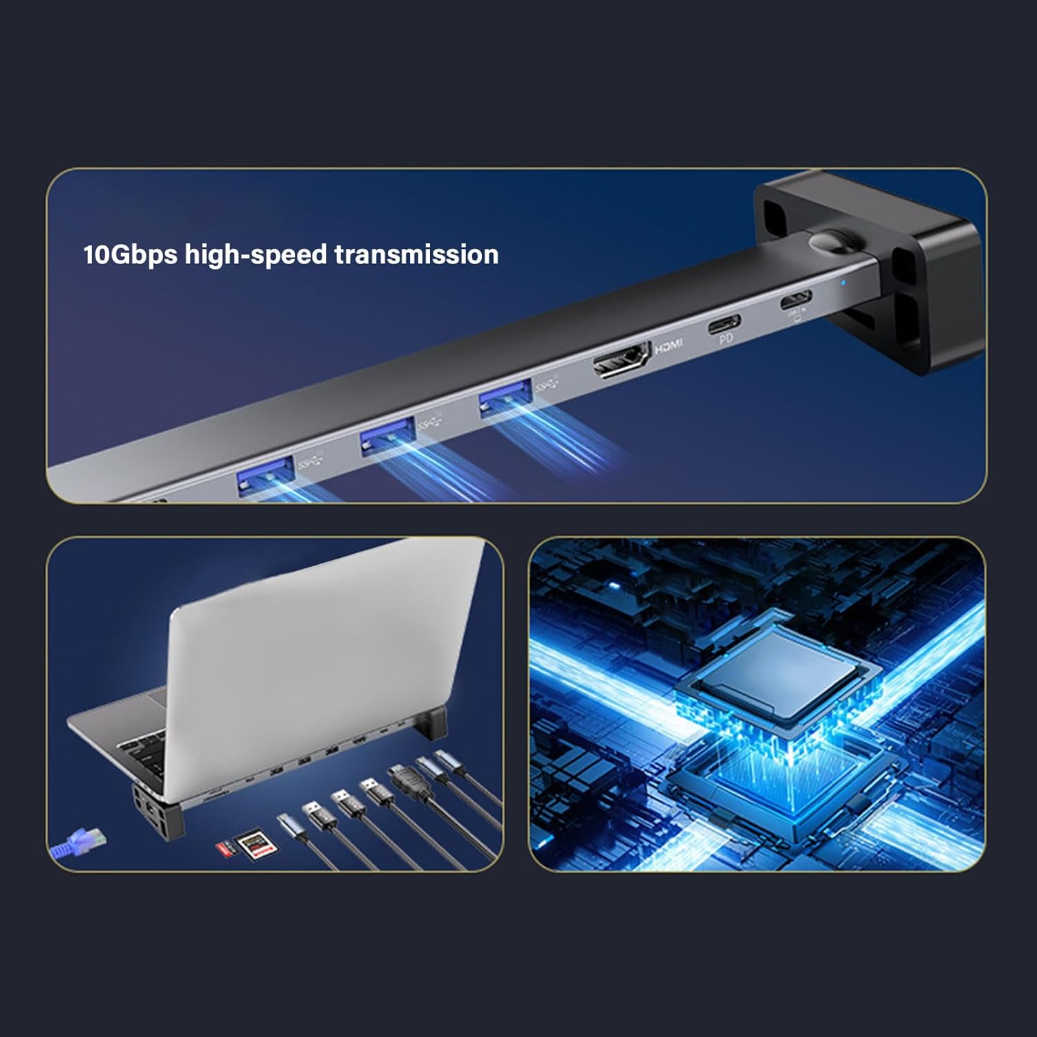 9 In 1 USB C Adapter 4K60Hz Video Transfer PD100W 1000M Rj45 Ethernet 10Gbps Data Transfer Multiple Devices CompatibleFeatures:4K60Hz output, 9-in-1 multiple function interfaces, meet the needs of multiple devices connection.Adapt to 10/100/1000M Ethernet speed and stability, gaming office, watching movie, can be unimpeded 4K60hz port output video, backward compatibles 4K60Hz@30Hz, 2K@144Hz, 2K@120Hz, 2K@60Hz, 1080P@144Hz. PD3.0 100W power supply, charging your computer at the same time, not power loss while playing. Double memory card reading at the same time, Double card slot designing, suitable for cellphone/camera and other memory card photos/videos at any time.With LED lights display, read and write blinking, running at any time to grasp, not need driver.Specifications:Name:9-in-1 USB3.2 Docking Station 10/100/1000M Rj45 Ethernet speed PD3.0 100 power supplySpeed:USB C/USB A 10Gbps HD4K60Hz Output;backward compatibles 4K60Hz@30Hz, 2K@144Hz, 2K@120Hz, 2K@60Hz, [email protected]:about 285x31x59mm/11.22x1.22x2.32inComponent:Aluminum Cable:about 50CM/19.7inPackage Includes:1PC 9-in-1 USB3.2 Docking StationNote:Due to light and screen differences,the item color may be slightly different from the pictures.Please allow 0.5-2cm differences due to manual measurement