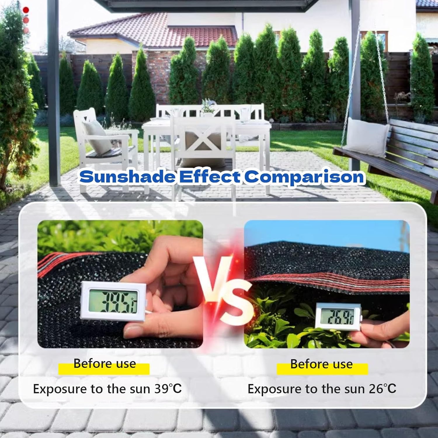 Pergola sun shade cloth can be used to protect plants and fruits from bad weather, provide shade for gazebos, provide shade for swimming pools and patio activity areas, provide shade for pet houses, and even provide shade for patio cars.Product parameters:Product name: sunshade netProduct color: blackProduct material: polyethyleneProduct shape: rectangularProduct size: length x width,Shading rate: 95%Product function: sun protection, heat insulation, UV protection, windproof, waterproof, breathable, sunshade, heat preservationPlease note:1. Due to manual production and measurement, the actual size of the sunshade net will have an error of about 5cm.2. If you have any questions, please contact us by email.