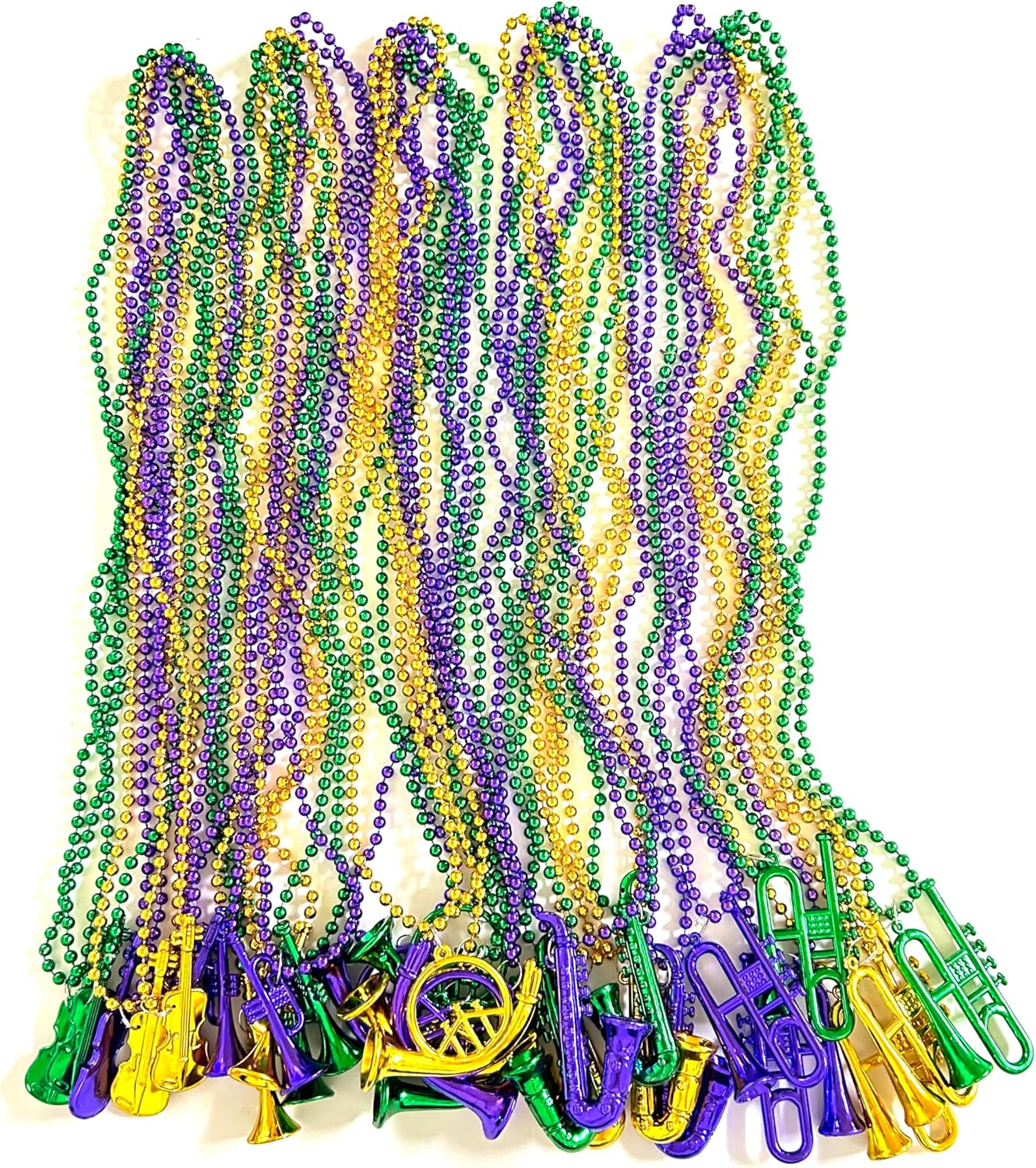 Feature: Each beads is designed usingpolypropylene plastic, and is incredibly lightweight, meaning you can wear itround your neck the whole night, no bother at all.Wide Applications: Great For Any Festive Occasion, Mardi Gras, Fancy Dress Party, Sleep Over Party, Night Club Dress-ups, Party Dress-up, Decorations and Party Supplies. The beads necklace are also great as photodecorations when taking a few selfies with the friends, fun photos for lastingmemories with these must-have party supplies. Specification: Color:Gold purple greenBeads length is 32 "Package Quantity: A total of 96 Pcs