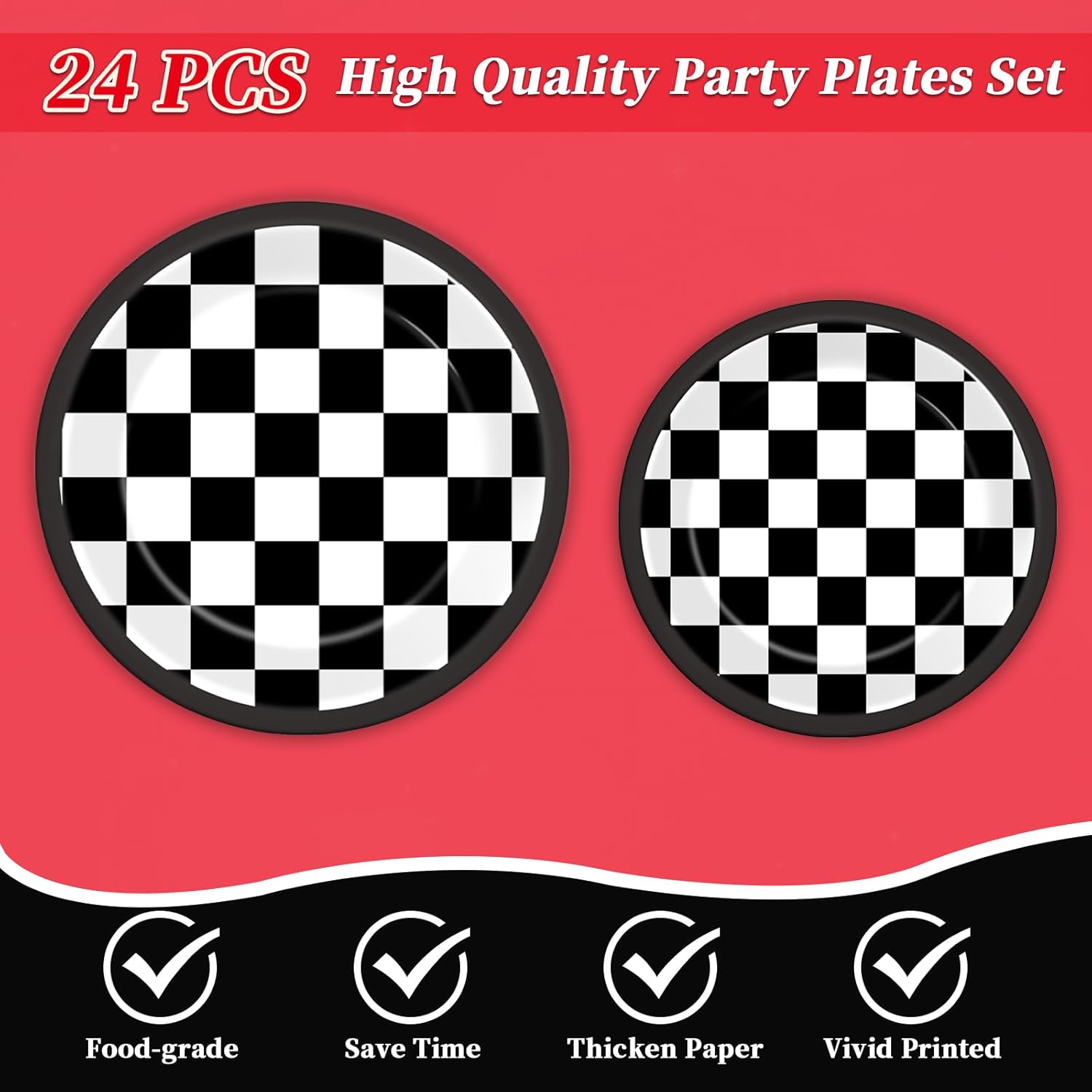 98 PCS Racing Car Theme Party Tableware Set Checkered Race Car Plates Napkins Tablecloth Forks Race Car Birthday Party Supplies Package Decorations Game Day Holiday Events Serves 24 Guests (Red) Product Quantity And Dimensions:2 red race car checkered tablecloths(107.87” x 53.93”), 24 pieces 9 inch racing car checkered plates, 24 black forks, 24 pieces 7 inch racing car checkered plates, and 24 pieces of racing car checkered napkins(6.4”) Color: Red White Black Pattern: Racing Car Checkered Product Care Instructions: Disposable Transform your party space with our racing-themed red tablecloth Set!Perfect for birthdays, race car-themed parties, or some event where you want to add a dash of energetic flair. Racing theme party tableware set turns your table into a party highlight.