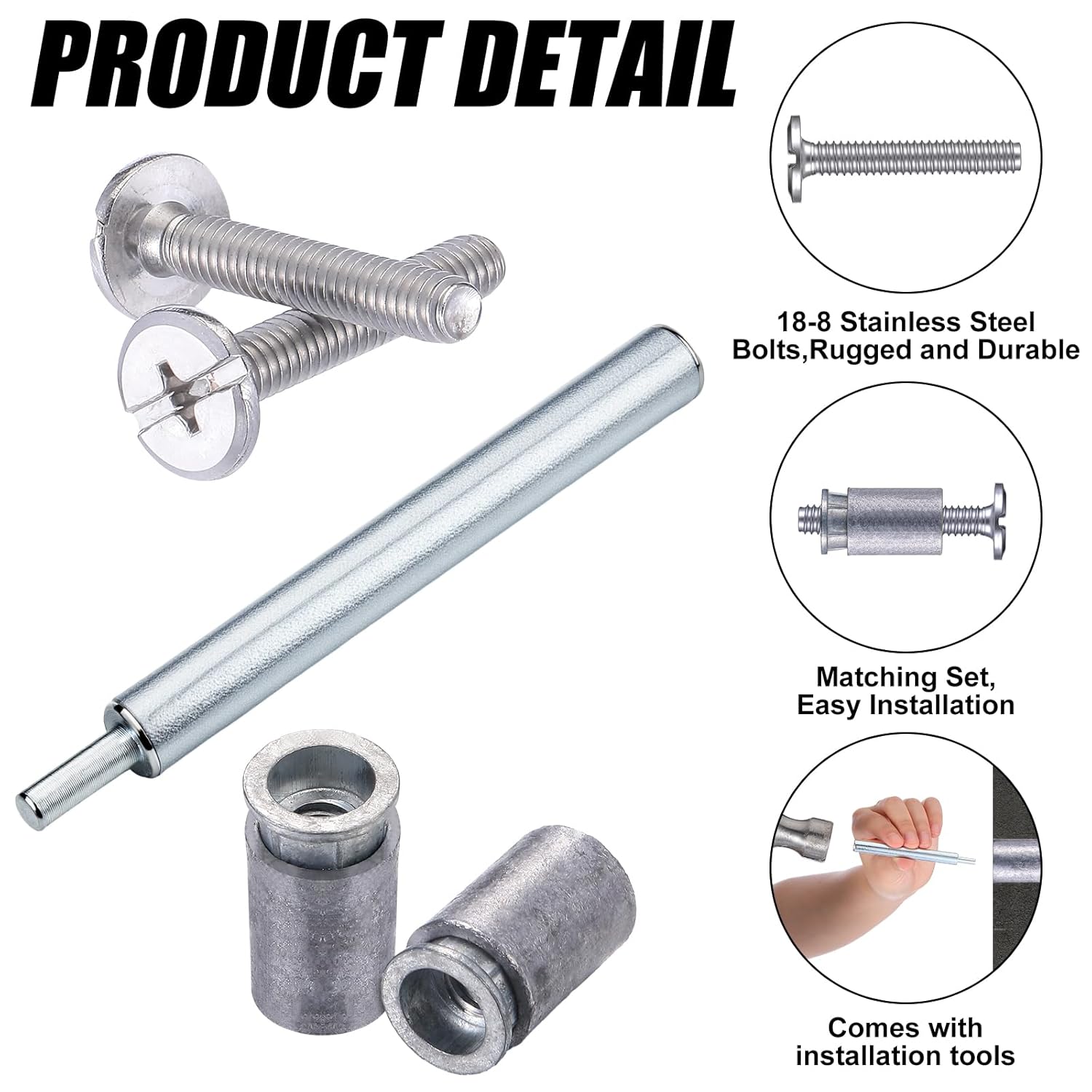 Features: Ideal for a variety of applications, usually applied to attach storm windows and shutters to brick or masonry walls. Equip your outdoor installations with our reliable and robust bolts, ensuring that they stay put, even in the harshest weather. Enjoy peace of mind as our bolts offer reliable and efficient functionality for a wide range of applications. Please note, it's essential to consult if you're uncertain about the installation process. Specifications: Material: 18-8 stainless steel Color: Size: 1/4-20 x 1-1/2 inch hurricane sidewalk bolt 1/4-20 x 1-1/2 inch steel bolt 4.02 inches erecting tools for bolt Package includes: 48 x Hurricane sidewalk bolt 48 x Hardware stainless steel bolt 2 x Erecting tools for bolt Notes: Manual measurement, please allow slight errors on size. The color may exist a slight difference due to different screen displays. Pointed items are included, please be careful when using and please keep them away from kids.