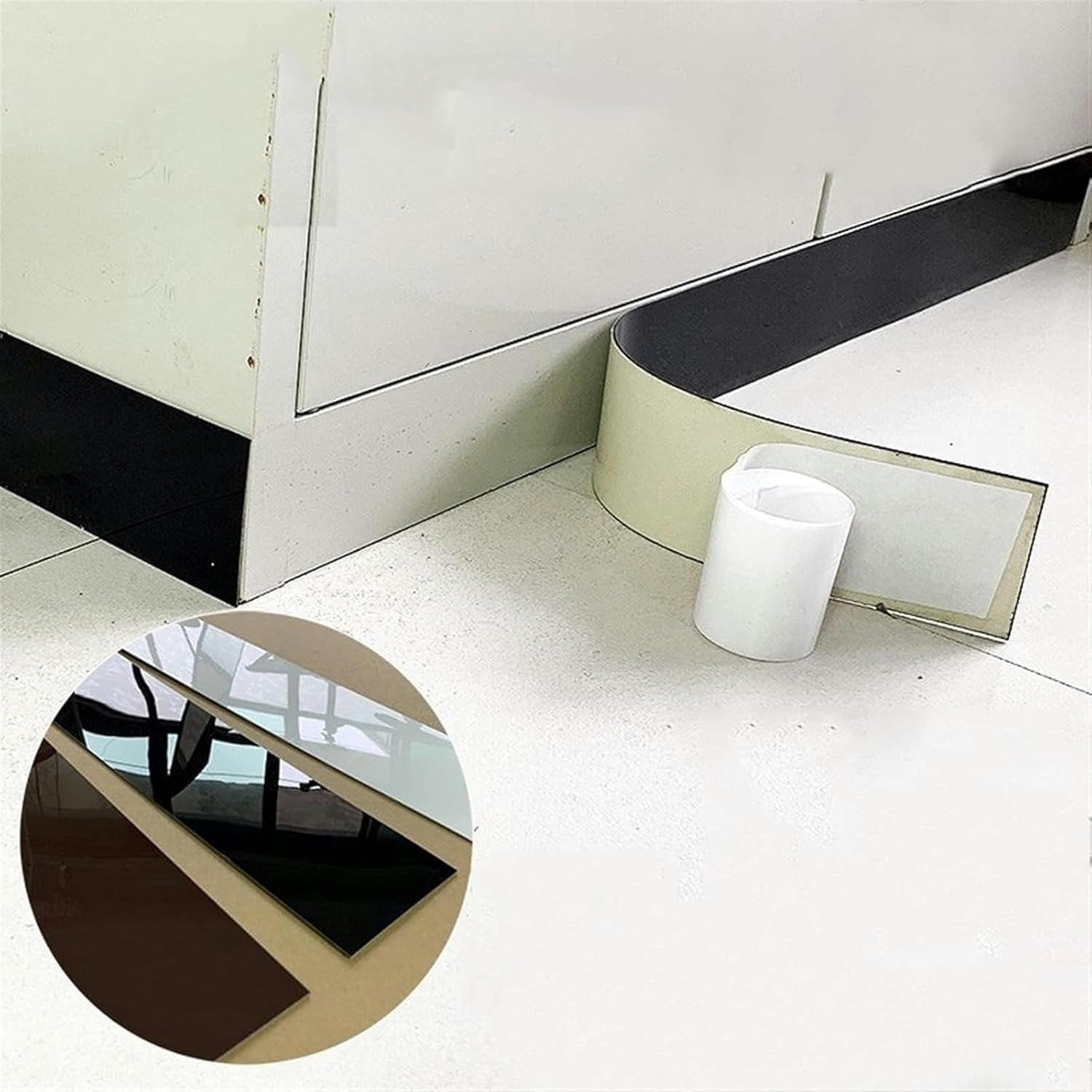 Specification1.Name: Wall base moulding trim2. Material: acrylic3. Color: glossy black , glossy white 4. Length: 9.8 ft (3.28 ft/pcs, 3 pcs in total),5. Width: 2.3 Inch , 3.1 Inch , 3.9 Inch , 4.7 Inch , 5.9 Inch6. Overall thickness: 0.078 inch;Features1. Flexible, waterproof, light weight, no cracks, not fall off.2. Strong self-adhesive, simply peel & stick, easily installed without tools.3. Glossy finish, modern decor4. Apply to any flat and smooth dry corner such as tile, plastic, marble, metal, glass, wood, smooth wall, ext.5. These molding trims are perfect for baseboard,floor, ceiling, wall, edge, corner, border, cabinet, bathroom, bedroom, kitchen and more. They can also be used as protective stickers to every corner.Installation Instruction:1. Clean the specific locations of the wall.2. Peel off the adhesive stickers.3. Press tightly for a few seconds.4. It’s recommended to keep 24 hours for more stability, don’t try to pull it up until it gets completed the installation.(Note: When the temperature is below 20 degrees, use a hair dryer to preheat the back glue for the best effect.)