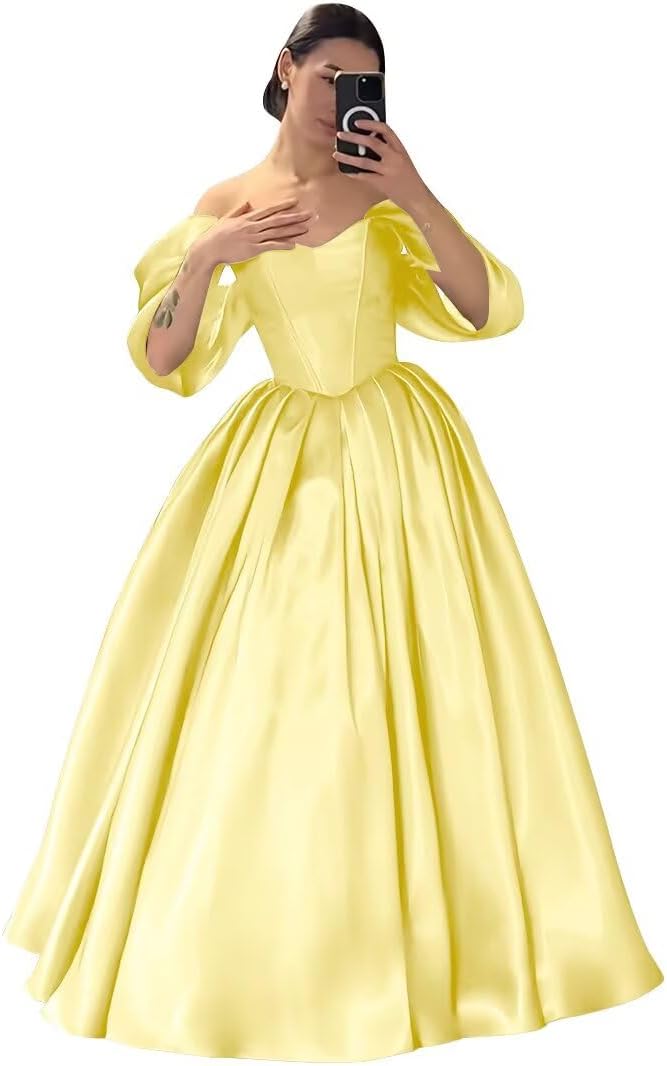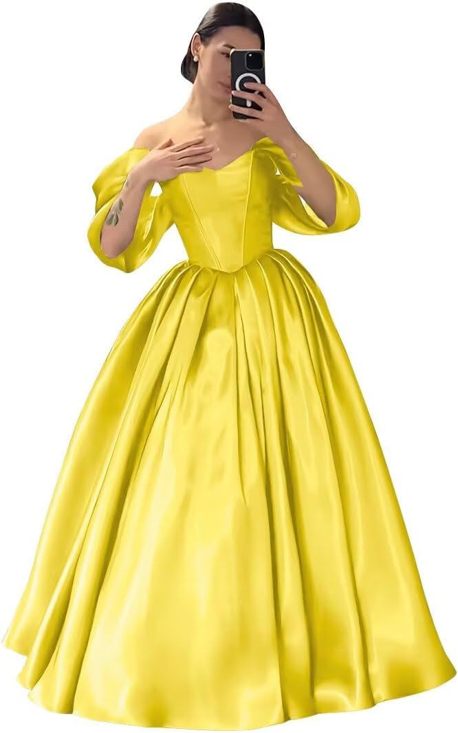 Welcome!✿We're a professional manufacturer and seller of prom dress,bridesmaid dress,wedding dress,cocktail dress,evening dress,party dress,formal dress,homecoming dress and quinceanera dress.✿We have a professional team of design,excellent dressmaker.You can get perfect dress.Product Details:Fabric: SatinSilhouette: A LineNeckline: Off the ShoulderClosure: Lace UpSleeves: SleevelessSeason: Spring, Summer, Fall, WinterWarm Tips:It is VERY important to know how to choose a proper size for shopping online, especially formal dresses. To help you get the dress with perfect fit, please follow the steps below to find the correct size.❥ Measure your waist, bust, hips and compare with our own size chart (the last image of pictures column).❥ If your size is between two sizes, choose the bigger one.❥ Normally, no one's figure is in exact standard size. If the dress size differs little from your own size, you could find a tailor to make a minor alteration. All our dresses come with additional fabric in the seams.Please kindly note that the real color of the item may be slightly different from the pictures shown on the website due to camera quality and monitor settings.