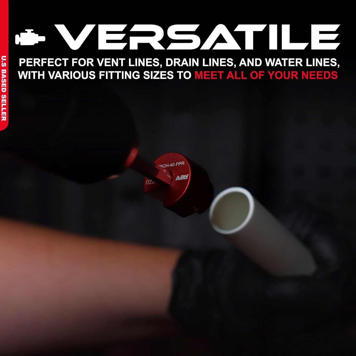 The ABN 8pc Pipe Reamer Kit, designed to meet all your pipe deburring needs with precision and ease. This comprehensive set includes six reamers in sizes: 3/4 inch, 1 inch, 1-¼ inch, 1-1/2 inch, 2 inch, 2-½ inch, 3 inch, and 4 inch. Each tool is crafted from high-quality steel, ensuring durability and long-lasting performance. The reamers come neatly stored in a foam cutout, making organization effortless. With a hex shank design that fits standard 1/2’’ drills, these reamers are versatile and convenient to use. The Reamer kit is perfect for removing residue from PVC, CPVC, or ABS fittings, ensuring clean fittings for reuse and saving both labor time and material costs. It's suitable for vent lines, drain lines, and water lines, covering common fitting sizes to meet a variety of needs. Warning: This product can expose you to chemicals which is [are] known to the State of California to cause cancer and birth defects or other reproductive harm.