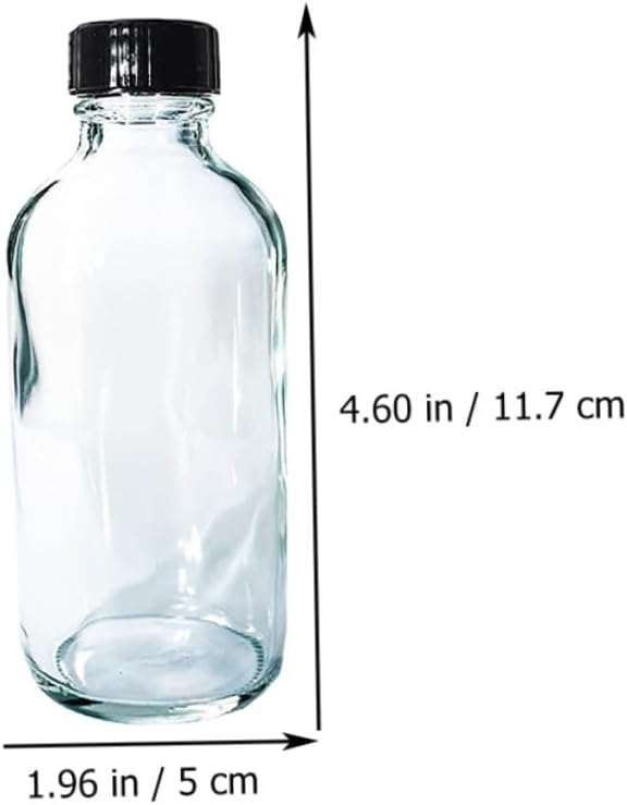 Package Include 12 x bottles Characteristics - Capacity: 120ml chemical bottles. - Material: Glass lab chemical bottle. - Size: About 11.70X5.00X5.00cm/ 4.60X1.97X1.97inch storage bottles. - Clear view content, easy to identify the items that you stored lab bottles. - sealing performance, you do not have to worry about the contents will be spilling out bottles. - Our bottle own the , fall and break resistance ability chemical bottle. - Narrow mouthed bottle is made with , not easy to break and deform lab chemical bottles. - ColorTransparent sample bottles - bottles, used to store powders and liquids, such as chemicals, and solvents clear bottles with caps.Goods Descriptionlab bottles It would be your laboratory helper for you.lab bottle It is made of for and practical to use.clear bottles with caps If you are looking bottle with reliable and reasonable , I will tell you that our bottle will be your