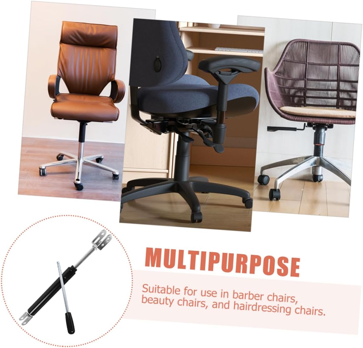 Package List 2 x gas rods 2 x piston rods Characteristics -Material:Iron chair air rod -Effortless adjustment: the gas spring mechanism ensures smooth and adjustments, improving the overall functionality and comfort of your chair chair repair part -Stroke: 8 cm salon accessory -Size:29.00X27.50X2.50cm/11.40X10.81X0.98in gas rod -Strong support: engineered to support heavy weights, this gas spring rod is ideal for heavyduty chairs, ensuring stability and user safety barber chair replacement parts -Size:21.00X2.00X2.00cm/8.25X0.79X0.79in -Easy to install: this gas spring rod can be installed quickly and without any hassle - build: made from materials, this gas spring rod is designed to endure frequent use and provide performance in any chair -Wide application: compatible with various chair , including office, barber, and salon chairs, making it a versatile replacement part for different settings -Color:Black -air pressure: 300 N -Strut mounting position: 370 mmGoods Informationchair repair part By replacing your old chair rods with this reliable accessory, you can ensure your chairs provide consistent performance, enhancing both client comfort and service efficiency.barber chair replacement parts This rod offers excellent durability and smooth operation, making it ideal for frequent use in busy salons.chair air rod The barber chair gas pressure rod is an indispensable part for any hairdressing professional