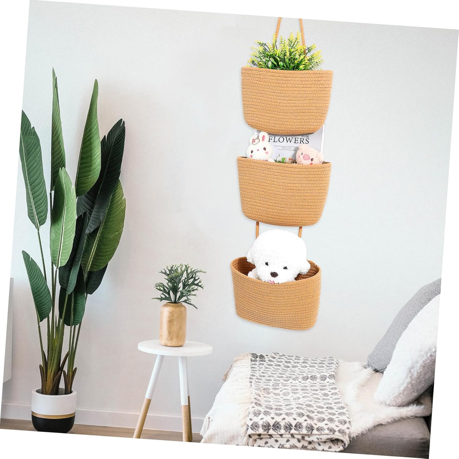Package List 1 x Hanging Basket Features - Sturdy Material: Crafted from finely woven cotton rope, these 3 tier hanging are sturdy and resistant to loosening or breaking Hanging Rope For Wall. - Minimalist Style: With a simple shape and woven texture, these hanging door complement various home decor styles Door Hanging Basket. - Versatile Application: Suitable for use in kitchens, bathrooms, bedrooms, and more, these wall offer convenient storage Door Organizer. -Material:Cotton Door Basket - Multi-Layer Design: The hanging wall basket features a multi-layer design, providing ample space for organizing items efficiently Hanging Wall Basket. - Space-Saving: These hanging can be mounted on doors or walls, saving floor space and maximizing the use of available space Nursery Basket. -Color:Brown Hanging Fruit Basket - Size: 28.00X27.00X6.00cm/11.00X10.61X2.36in Hanging Storage BasketGoods DescriptionNursery Basket Introducing our Wall Hanging Basket, the great storage for your home! With its multi-layer design, this wall basket provides ample storage space for your belongings.Wall Basket Our hanging basket can be easily mounted on walls or doors, saving you valuable floor space