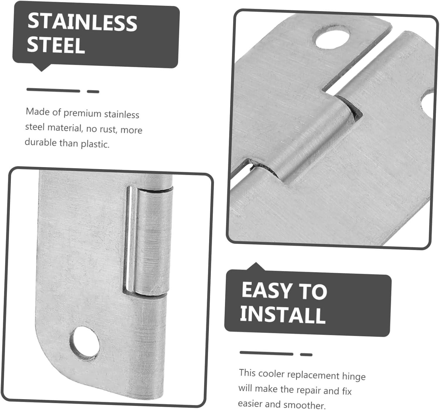 Package Include 18 x cooler hinges Features -Color: Silver Cooler Stainless Steel Hinges -Material: stainless steel stainless hinge Hole distance: 16mm/46mm cooler hinges -Size: 6.00X3.20X0.50cm/2.36X1.26X0.20in Hinges for Ice Chests Hole diameter: 4.9mm cooler stainless steel hinge - Every detail is carefully crafted, experience the high durability and practicality cooler hinges camping coolers accessories. - 165 to 25 quart hinged freezer and cooler can be used chest freezer door hinge replacement. - Make sure the door is kept tightly closed to prevent unnecessary injuries caused by shaking cooler replacement. - Small and compact size, light in weight, you can carry and use it wherever you go replacement parts for coolers. - A substitute freezer hinge for your broken or worn out one chest freezer hinges.Goods Descriptionhinge for cooler This product is a cooler replacement hinge, which is made of stainless steel material, with texture, safe and practical.coolers hinges It is a very practical accessory that will meet your needs well.car refrigerator hinge Easy to install and use, it can be easily applied to your cooler