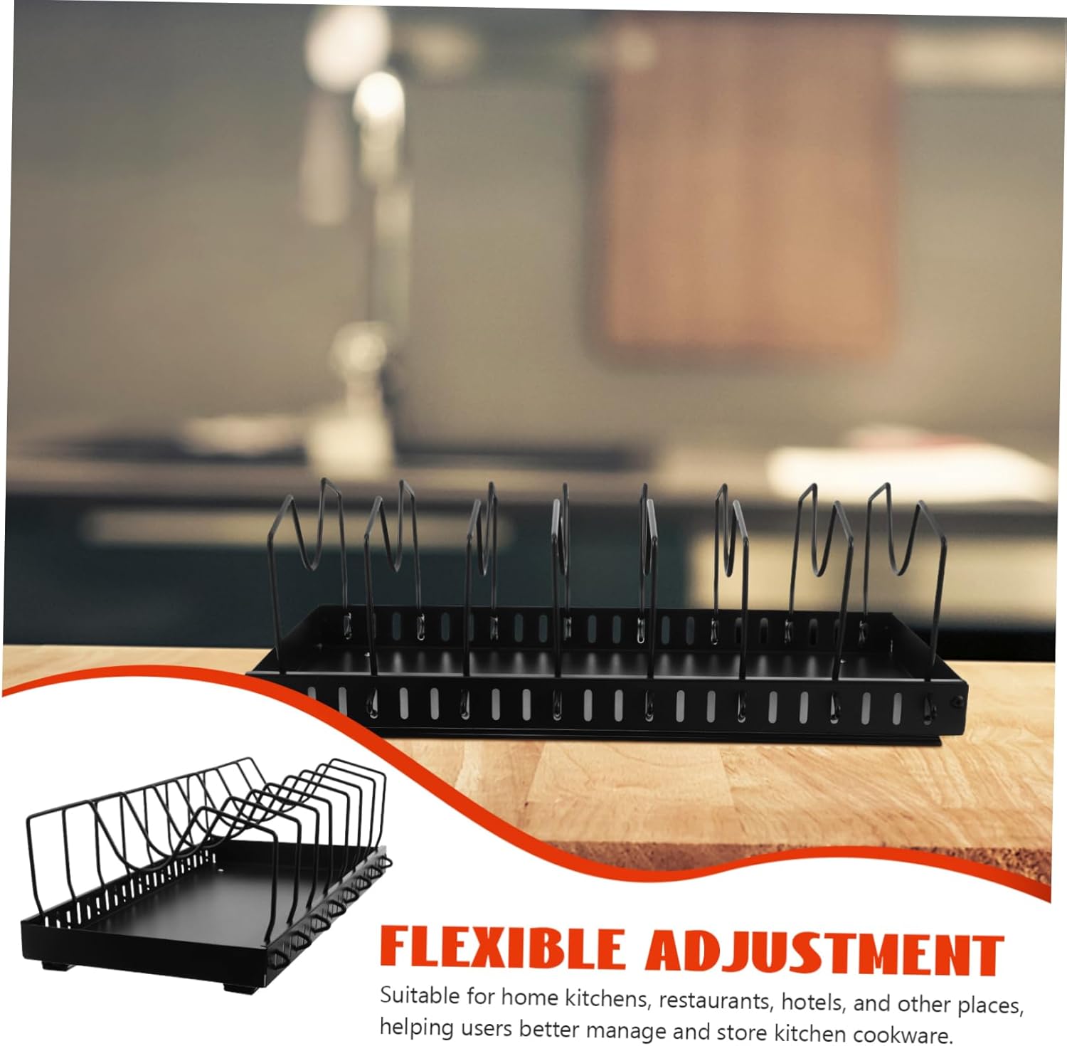 Package List 1 storage rack Features -Sliding rail: the sliding rail smooth and easy access to your cookware, making it convenient to retrieve and store items cutting board organizer -Selected metal material: constructed from metal, this organizer is built to last kitchen pan organizer -Maximize kitchen space: the drawer design helps to maximize kitchen space, keeping your kitchen neat and tidy lid organizers inside cabinet -Color:Black pot organizers inside cabinet -Adjustable dividers: the pot lid rack comes with adjustable dividers, allowing you to adjust the storage space according to your needs pull out pot and pan organizer -Ideal for various settings: for use in home kitchens, restaurants, and hotels, providing an efficient for cookware storage pan rack organizer for cabinet -Size:42.00X23.00X14.00cm/16.51X9.04X5.50in kitchen pots and pans organizer -Material:Metal lid organizer pots and pansGoods Descriptionlid storage organizer This adjustable pot lid rack is for maximizing cabinet space.lid rack for pot lids With its sliding rail, it allows for smooth pull-out access, making it easy to reach your cookware.pan storage organizer Ideal for busy kitchens, this organizer that all your cooking essentials are neatly stored and easily accessible